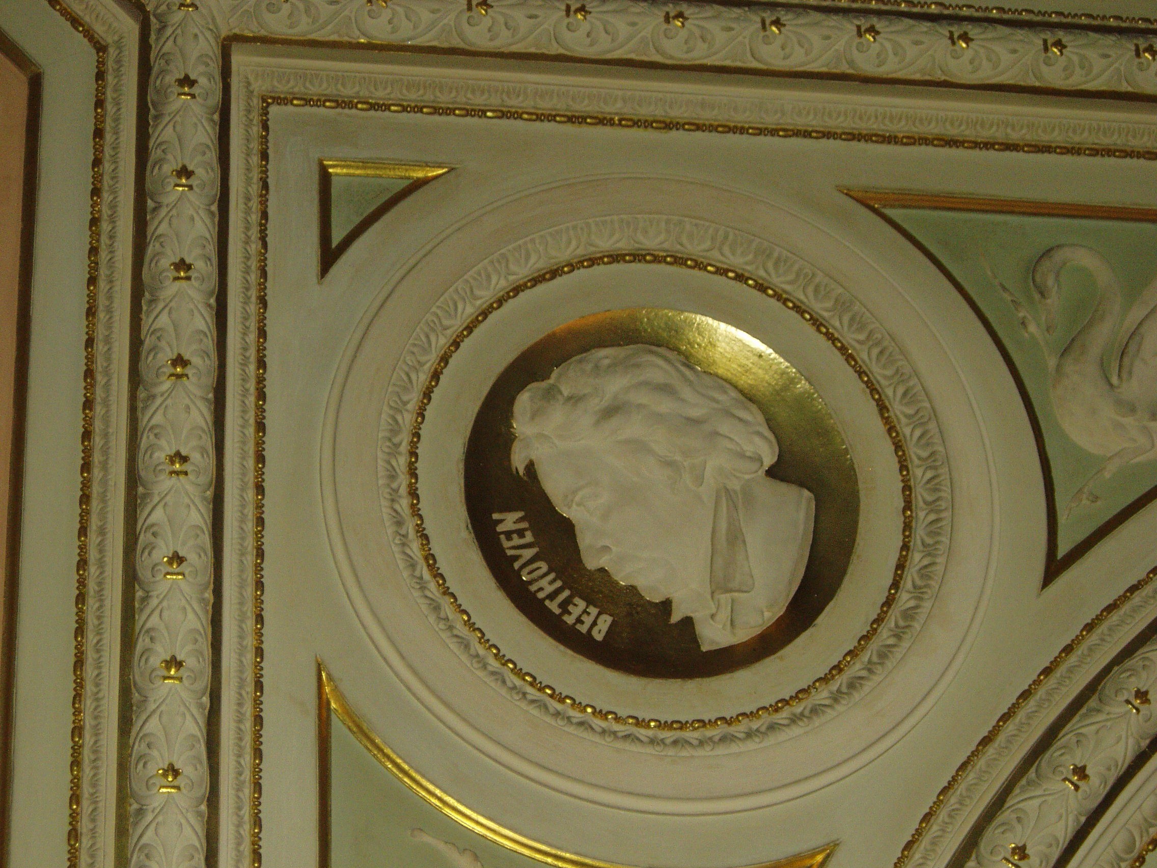 Nyilvános 1050 | 1618 | Budapest, VI. Andrássy út 3. | Az eklektikus bérpalota 1884-86-ban épült Czigler Győző tervei alapján. Építtetője Saxlehner Aladár kereskedő (a Hunyadi János keserűvizet ő terjesztette el Magyarországon). Felesége, Saxlehner Emma operaénekesnő volt - a Nemzeti Színház, majd az Operaház alt énekesnője -, akinek monogramja, illetve festett és szobor portréi több helyen is láthatók az épületben, illetve első emeleti gyönyörű lakásukban. A dúsgazdag üzletember a legjobb mesterekkel dolgoztatott. Bérháza körülbelül egyidőben épült az Operaházzal, amelynek freskóit Lotz Károly festette, s Saxlehner - vagy énekesnő felesége - saját palotájának belső festészeti díszítésére őt kérte fel. Máig épségben láthatók Lotz freskói nemcsak a lakásban, hanem a lépcsőházban is (a látogatónak érdemes felmennie a második emeletig!). A festett üvegablakok Róth Miska műhelyéből (lásd: Budapest VI, Nefelejcs u. 26.) kerültek ki. Saxlehnerék lakásában ma is láthatók az eredeti gyönyörű kandallók, falburkolatok, csillárok. A ház asszonya operaénekesnő lévén lakásukban zeneterem is volt, amelynek mennyezetén megörökített nagy zeneszerzők portréit ma is megtekintheti a látogató. Ebben az egykori nagypolgári lakásban ma a Postamúzeum működik. A kiállítás rendkívül harmonikusan illeszkedik a fényűző lakásbelsőhöz. A Postamúzeumot 1955-ben alapították, 1972-ben költözött a Saxlehner-palotába. A múzeum a postaszolgálat ipar- és technikatörténeti tárgyait, terveit, dokumentumait őrzi. Műtárgygyűjteményét adat-, fotó-, film-, hang- és könyvtár egészíti ki. Állandó kiállításán a XIX-XX. század fordulójának magyar postáját mutatják be, de rendszeresen tartanak időszaki kiállításokat is. A képen a zeneterem mennyezetén Beethoven arcképe látható. A fénykép 2007 januárjában készült. Felh. irod.: Schäffer Erzsébet: Mesék egy palotából. = S. E.: Hol nem volt. Életek, mesék, pillanatok. Bp. Sanoma Budapest Kiadói Rt., 2004. /Nők Lapja Műhely./ www.postamuzeum.hu www.museum.hu/budapest/postamuzeum/ |