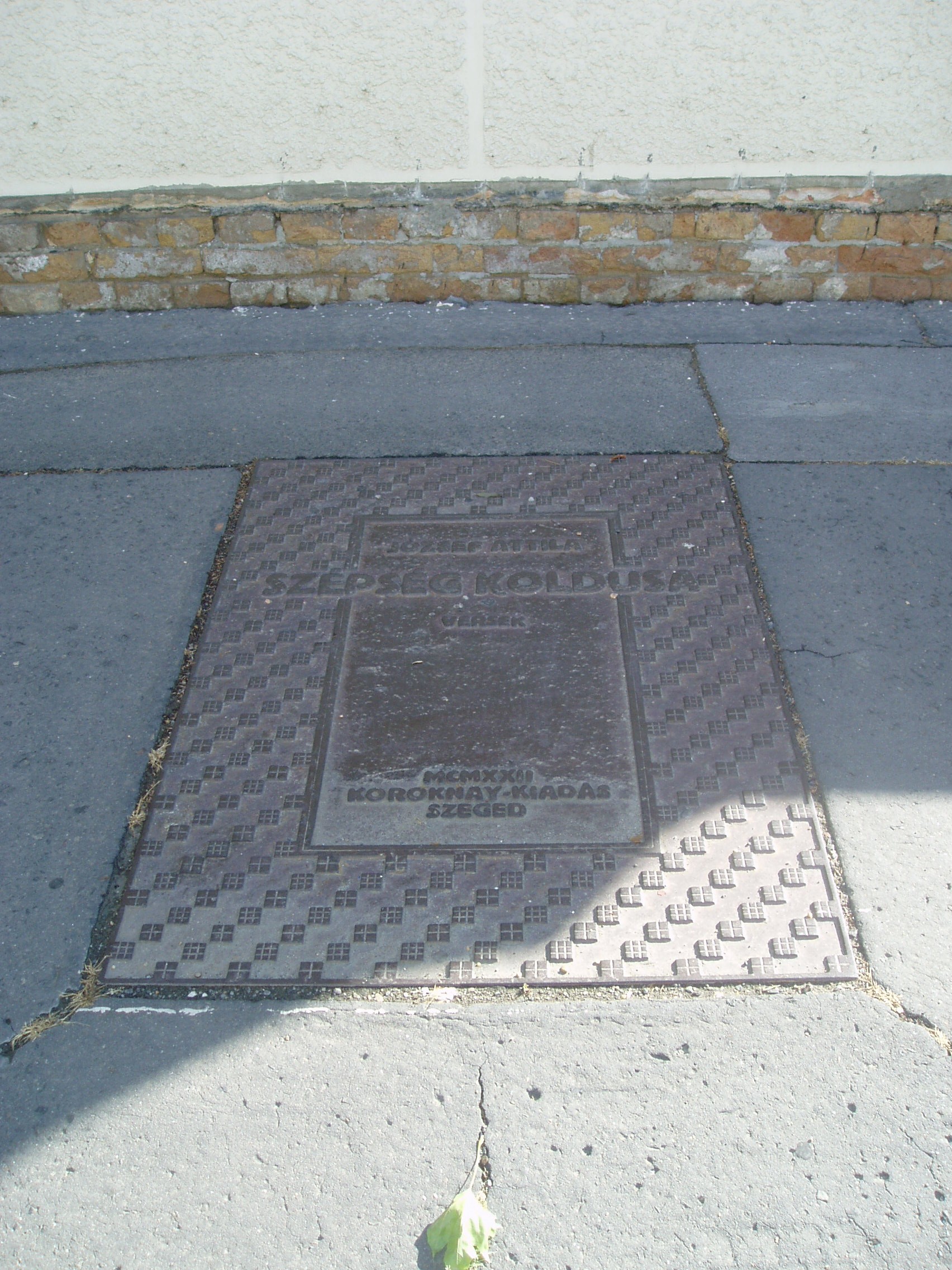 Nyilvános 1018 | 1567 | Makó, Csanád vezér tér 6. József Attila Gimnázium | A város központjából északra nyílik a sugárútszerű Csanád vezér tér. Nyugati oldalán áll a József Attila Gimnázium 1895-ben, eklektikus stílusban, Gerle Lajos tervei alapján emelt épülete. Itt tanított négy évig Juhász Gyula, itt tanult József Attila, majd Erdei Ferenc. A tizenöt és fél éves József Attila 1920 októberében érkezett Makóra. Verseire Juhász Gyula figyelt fel, akinek pártfogása révén a nyugat is közölt néhányat belőlük. Makói diák volt, amikor tizenhét éves korában Szegeden megjelent első verseskötete, a "Szépség koldusa", Juhász Gyula prófétikus előszavával: "A legnagyobb készséggel és örömmel vállalkoztam arra, hogy József Attila első verses könyvéhez előszót írjak. Ez a nagyon fiatal és nagyon tehetséges költő a legteljesebb mértékben megérdemli, hogy a figyelem feléje forduljon, hogy igaz szeretettel és reménységgel fogadja a magyar olvasóközönség és hogy a kritika se menjen el mellette közömbösen vagy ellenségesen és ne elégedjék meg vele szemben a nyomtatásban megjelenőknek rendesen kijáró vállveregetéssel. József Attila Isten kegyelméből való költő." Az épület előtt áll 2005-ben, születése centenáriumán újjáavatott szobra, a járdába ágyazottan pedig első verseskötetének bronzba öntött címlapja idézi emlékét. A fénykép 2007 júliusában készült. Felh. irod.: Barangolások Csongrád megyében. Miskolc, Well-PRess, 1997 |