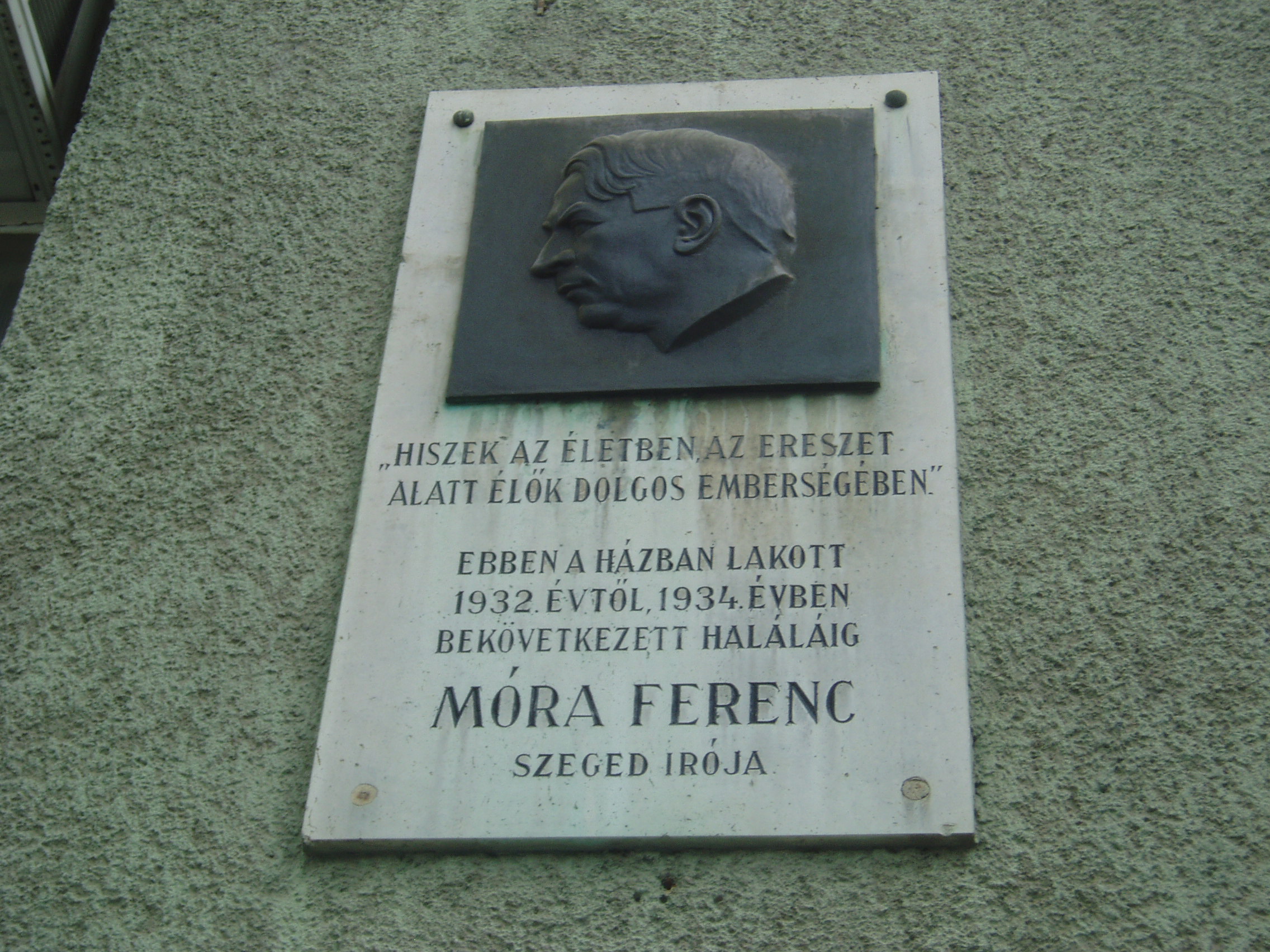 Nyilvános 999 | 1498 | Szeged, Boldogasszony sugárút 15. | Az alaposan átalakított városi házban volt Móra Ferenc utolsó lakása. 1932-ben költözött ide a Kölcsey utca 10. szám alatti lakásából. Új otthonát csak rövid ideig élvezhette, rátört a súlyos betegség, a hasnyáálmirigyrák. Halála előtt két hónappal itt kereste fel őt az erdélyi írók küldöttsége: Tamási Áron, Bánffy Miklós, Kemény János, Kós Károly és Ligeti Ernő. 1934. január 20-án a szegedi ipartestület küldöttségét fogadta lakásában. A foltozó szűcs fia ekkor vallotta magát "nemzeti szolgálómesternek". 1934. február 8-án hunyt el, sírja a Belvárosi temetőben (lásd: Szeged, Fonógyári út) van. Az épületen lévő emléktábláját Tápay Antal készítette. A fénykép 2007 júliusában készült. Felh. irod.: Péter László: Szeged. Bp. Panoráma, 1981 |