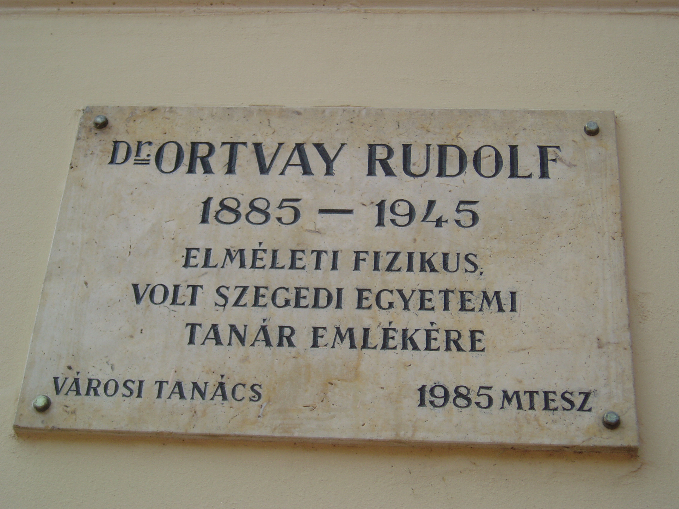 Nyilvános 989 | 1420 | Szeged, Klauzál tér 5. Kárász-ház | A tér legszebb és legjelentősebb műemlék épülete a Kárász-ház (1845). A szegedi klasszicizmus legérettebb, egyszerű, de monumentális alkotása. Kiemelkedő szerepe van a tér kiegyensúlyozott hatásában. Az 1920-as években, szegedi egyetemi tanár korában itt lakott Ortvay Rudolf (1885—1945) fizikus. Elsősorban neki köszönhető a modern fizika tanításának bevezetése a pesti tudományegyetemen, és közvetve Magyarországon. A fénykép 2007 júliusában készült. Felh. irod.: Péter László: Szeged. Bp. Panoráma, 1981 http://titan.physx.u-szeged.hu/physics/hist/ortvay.htm |