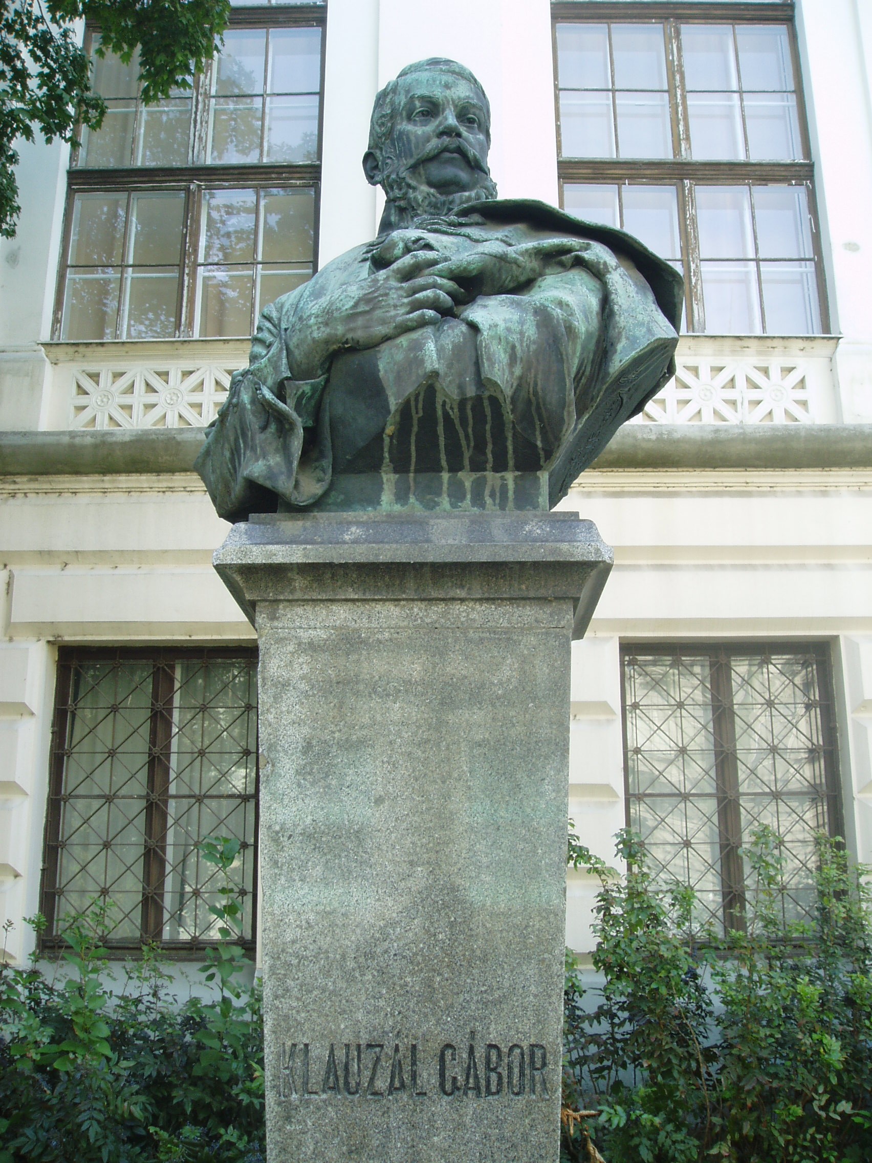 Nyilvános 1008 | 2283 | Szeged, Roosevelt tér: Klauzál Gábor mellszobra | A Közművelődési palota előtt 1906-ban helyezték el Klauzál Gábor mellszobrát, ifj. Vastagh György alkotását. Klauzál Gábor Pesten végzett jogot, s a hagyomány szerint amikor Imre bátyja hívására állást keresni jött Szegedre, kendőbe kötve, botja végén hozta minden vagyonát. Egy bálon hódította meg a szép Prezetska Máriát, egy jómódú gyógyszerész lányát. Bátyja és apósa vitte keresztül, hogy a jó képességű fiatal ügyvédet Csongrád megye 1828-ban első aljegyzőnek és fizetéses táblabírónak nevezte ki. Szeged 1832-ben követévé választotta. 1847-ben meghalt a felesége, így apósa házát ő örökölte. A szabadságharc bukása után kistétényi birtokán gazdálkodott. Az 1861. és 1865. évi országgyűlésen Szeged képviselője volt a Deák-párt programjával. Szegeden hunyt el, sírja a Belvárosi temetőben van (lásd: Szeged, Fonógyári út). Egykori lakóházának helyét emléktáblával jelölték meg (lásd: Szeged, Klauzál tér 8.). A fénykép 2007 júliusában készült. |