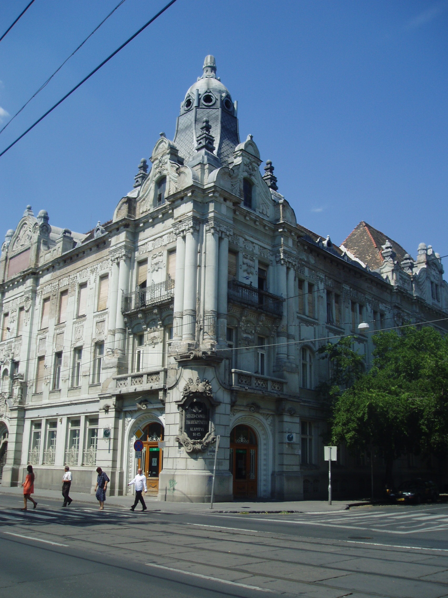 Nyilvános 996 | 1451 | Szeged, Széchenyi tér 7. | A Széchenyi tér Magyarország egyik legszebb, legnagyobb szabályos négyszög alakú tere. 1848-ban Szabadság térnek nevezték el. 1860-ban, halála után kapta a "legnagyobb magyar" nevét. A 7. számot viselő palota 1904-ben Baumhorn Lipót tervei szerint épült 1904-ben szecessziós stílusban az egykori Szeged-Csongrádi Takarékpénztár székházának. A fénykép 2007 júliusában készült. Felh. irod.: Péter László: Szeged. Bp. Panoráma, 1981 |
