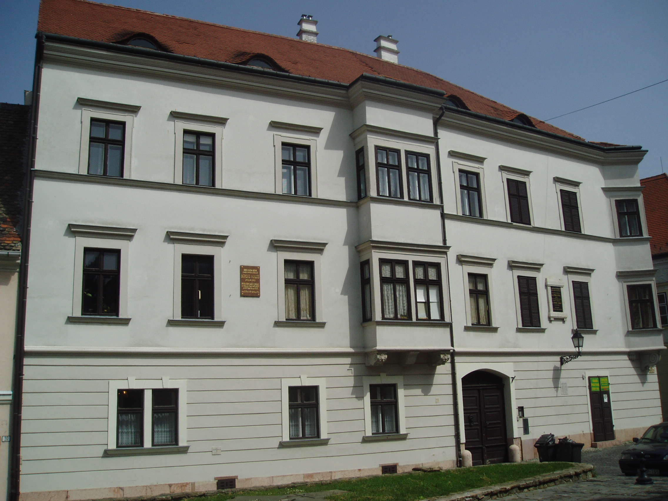 Nyilvános 1078 | 1778 | Győr, Bécsi kapu tér 4. | Európa legszebb barokk terei egyike a győri Bécsi kapu tér, amely nevét az 1860-ban lebontott nagytömegű, olaszos stílusú városkapuról kapta. A 4. számú épület a XVII. században épült, a rajta lévő műemléki tábla szerint a várkonyi Amede családé volt. Egy másik emléktábla arról tudósítja a sétálót, hogy ebben a házban élte át a város 1945-ös ostromát Borsos Miklós (1906-1990) szobrászművész, aki 1922 és 1947 között Győrben élt és alkotott (lásd még: Győr, Apor Vilmos püspök tere 2.). A felvétel 2008 május végén készült. Felh. irod.: Cziglényi László: Győr. Bp. Panoráma, 1981 |