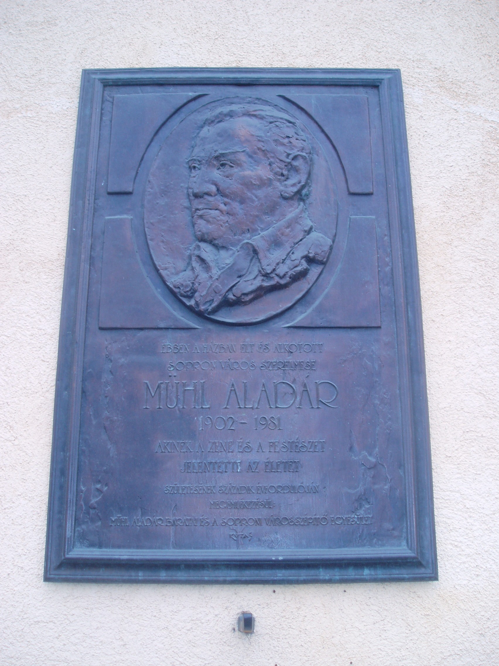 Nyilvános 1055 | 1673 | Sopron, Bécsi út 20. | Emléktáblájának tanúsága szerint ebben a házban élt Mühl Aladár festőművész (1902-1981). Sopronban született, művészetre fogékony családban nevelkedett. 1920-ban az evangélikus líceumban érettségizett, majd tanítói oklevelet szerzett. Munka mellett végezte el a Zeneakadémiát, ahol Szőnyi Erzsébet tanítványa volt. A második diploma megszerzése után a soproni zeneiskolában szolfézst és zongorát tanított. A bohém hírében álló Mühl egész életében elkötelezett közéleti ember volt: ő szervezte meg Sopronban a Kodály Zoltán módszerét követő zenei általános iskolát. Évente nyári művésztelepet szervezett, Sopronba csábítva számos kiváló művészegyéniséget. A festő Mühlnek örök szerelme volt Sopron. Első kiállításával 1926-ban mutatkozott be szülővárosában, ezt újabb önálló tárlatok követték 1935-ben, 1949-ben, 1971-ben és 1976-ban Sopronban, Győrben és Németországban is. 1977-ben Lackner emlékéremmel jutalmazták. A fénykép 2008 júniusában készült. Felh. irod.: http://cyberpress.sopron.hu/article.php?id=9735 |