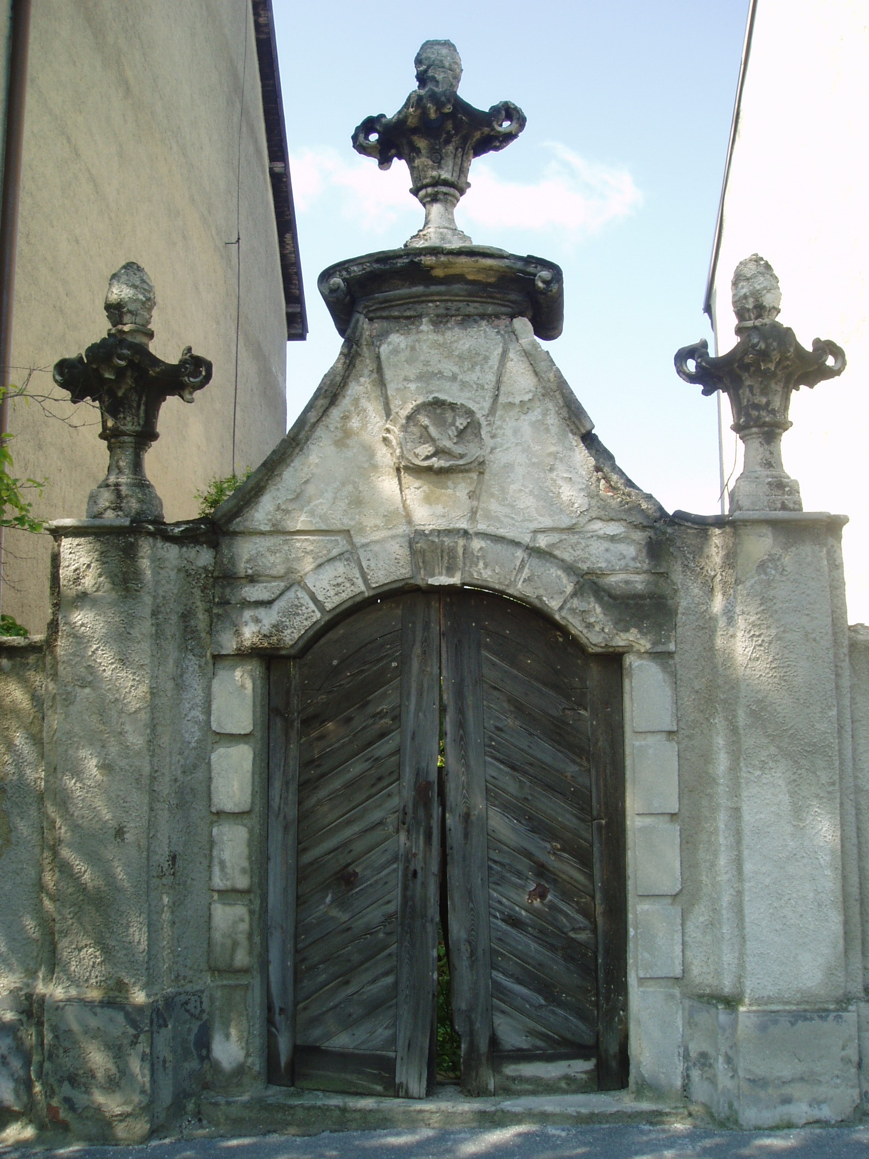 Nyilvános 1081 | 1640 | Sopron, Bécsi út 23. | Az 1750 körül készült szép kapu a ferencesek kertjének bejárata volt. Mai helyére a Ferenczy János utca környékéről az 1930-as években került. Rokokó vázákat tartó, kváderezett pillérek és lizénák között nyílik a szegmensívű bejárat, fölötte a ferences címer látható. A kapuépítményt rokokó váza koronázza meg. A fénykép 2008 júniusában készült. Felh. irod.: Czellár Katalin: Sopron. 3. jav. kiad. Bp. Panoráma, 2000 |