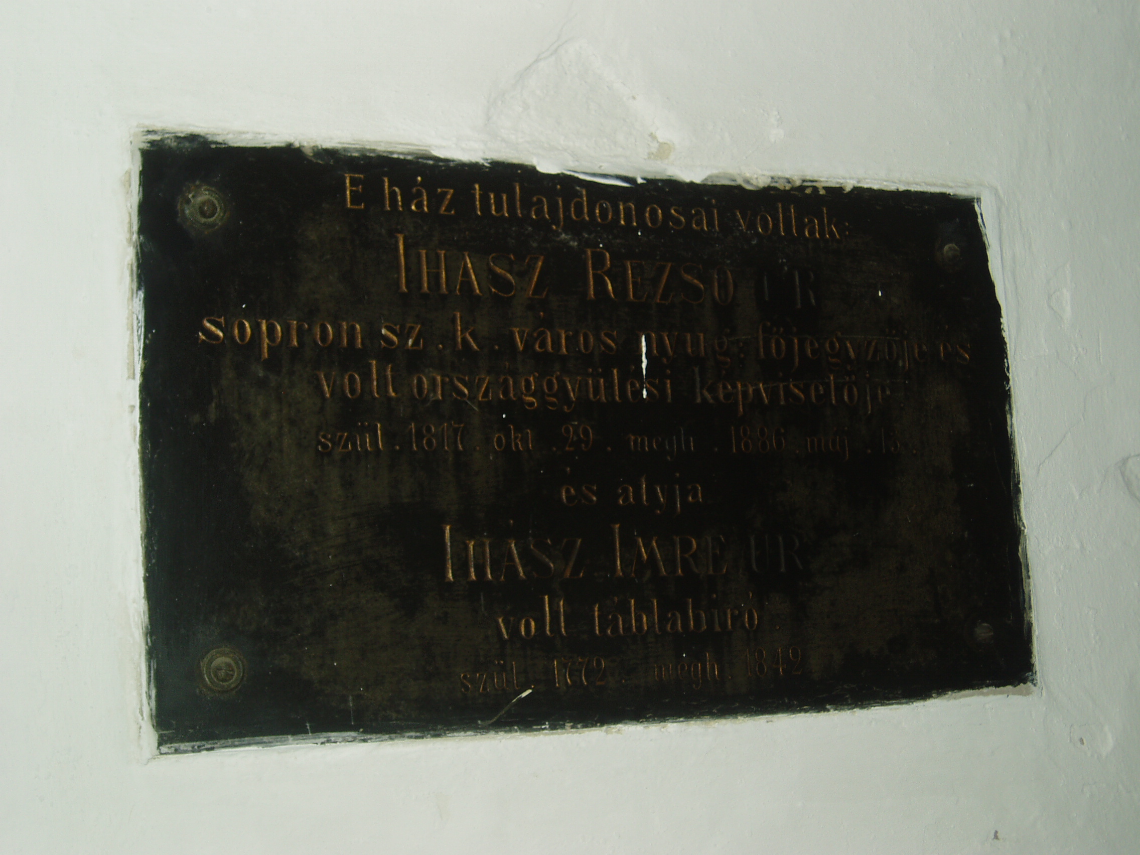 Nyilvános 929 | 1335 | Sopron, Hátsókapu 2. | Az ún. Caesar–ház hatalmas reneszánsz sarokerkélyével a városkép jellegzetes eleme. Helyén valamikor több kisebb, valószínűleg a XV. században épült lakóház állt. Az 1676-ban Sopron belvárosát sújtó nagy tűzvész után ezek megmaradt részei, valamint a belső városfal maradványainak felhasználásával épült fel e pompás kis városi palota. Dongaboltozatos kapualjában megmaradtak a középkori ülőfülkék. Udvari szárnyának emeletén toszkán oszlopos, köríves árkádsor van. Az udvarból a falszorosban kialakított kertbe juthatunk, ahol látható a római és a ráépült középkori városfal, amelyet ablakokkal áttörve az épület hátsó homlokzataként használtak fel. Két emeleti termében megmaradt az 1700 körül készült, kora barokk ornamentális stukkómennyezet. Az 1681-es országgyűlés idején ebben az épületben ülésezett a főrendiház, ekkor választották Magyarország nádorává Esterházy Pál herceget, aki Harmonia caelestis című kantátasorozatával beírta nevét a magyar zenetörténetbe is. Egy fekete márványtábla a ház egykori tulajdonosairól emlékezik meg: Ihász Imre (1772-1842) táblabíróról és fiáról, Ihász Rezső (1817-1886) főjegyzőről, országgyűlési képviselőről. A fénykép 2008 júniusában készült. Felh. irod.: Czellár Katalin: Sopron. 3. jav. kiad. Bp. Panoráma, 2000 |