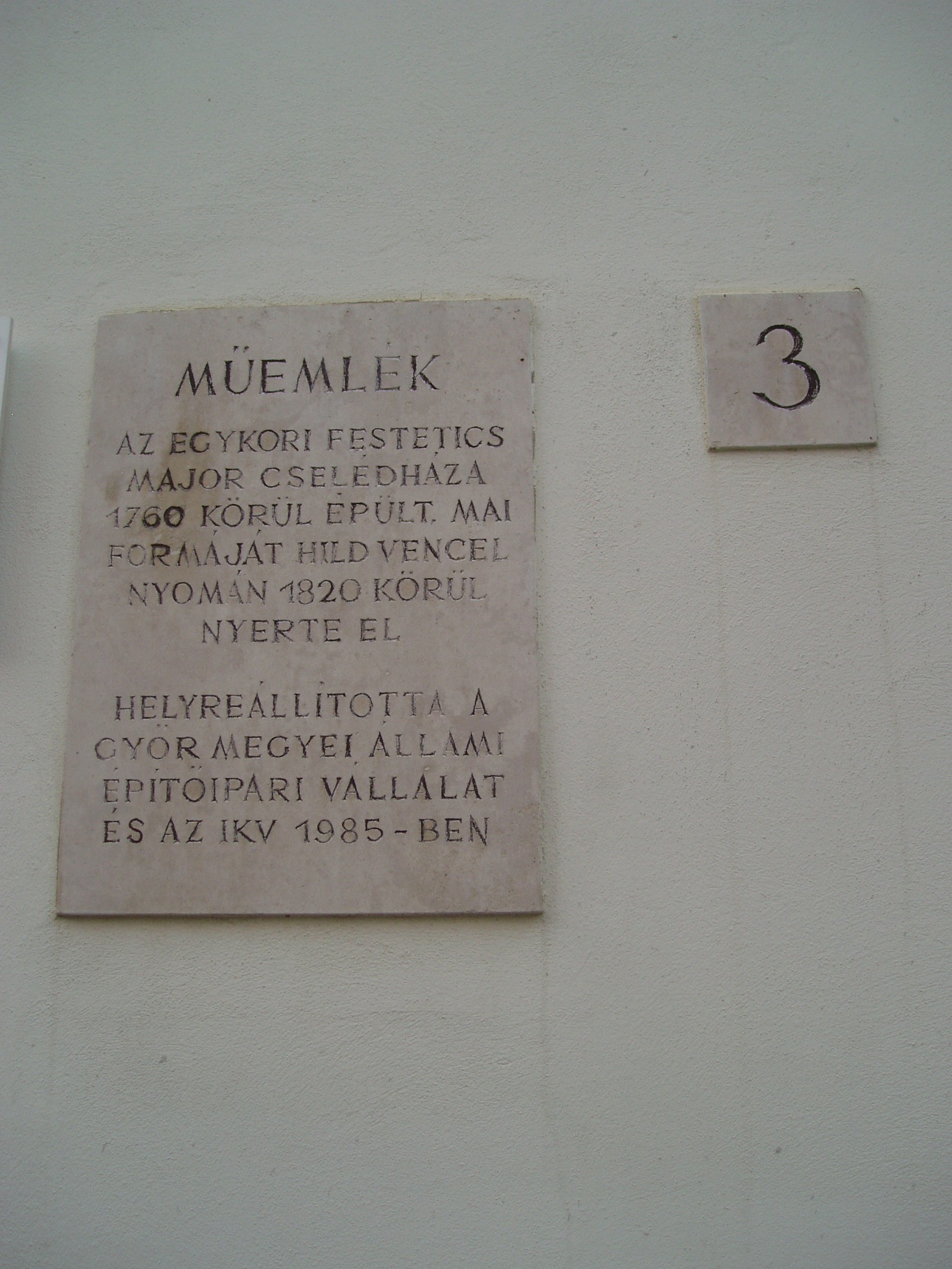 Nyilvános 967 | 1499 | Sopron, Major köz 3. | Az egykori Festetich–major monumentális épületegyüttesében, az udvarról megközelíthető kétemeletes épületben működött az 1930-as években a Liszt Ferenc Zeneiskola. Az intézmény jogelőde az 1829-ben létrehozott Soproni Zeneegyesület zeneiskolája volt. A fénykép 2008 júniusában készült. Felh. irod.: Nagy Alpár: 175 év a soproni zeneoktatás szolgálatában: a zeneiskola jubileumára. Sopron, Horváth József Művészeti Iskola, 2004 Dessewffy–Horváth Marietta: Régi jó soproniak, érdekes emberek, történetek. Sopron, Perkovátz Tamás, 2002 |