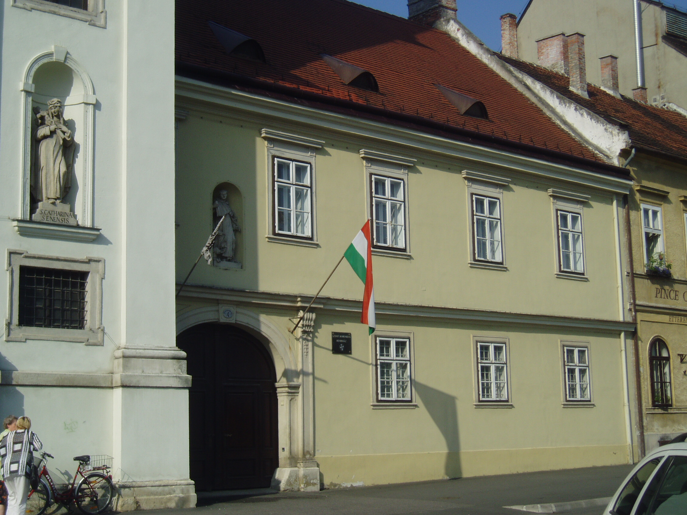 Nyilvános 912 | 1227 | Sopron, Széchenyi tér 4. | A templom mellett álló egyemeletes kolostort 1745-1750 között építették. A félköríves fülkében Szent Domonkos szobra áll. A Domonkos-rendi szerzetesek 1764-ben telepedtek le Sopronban s 1700-ban vásárolták meg a mai templom és a kolostorépület helyén álló két házat. A kép 2008 júniusában készült. Felh. irod.: Czellár Katalin: Sopron. 3. jav. kiad. Bp. Panoráma, 2000 |