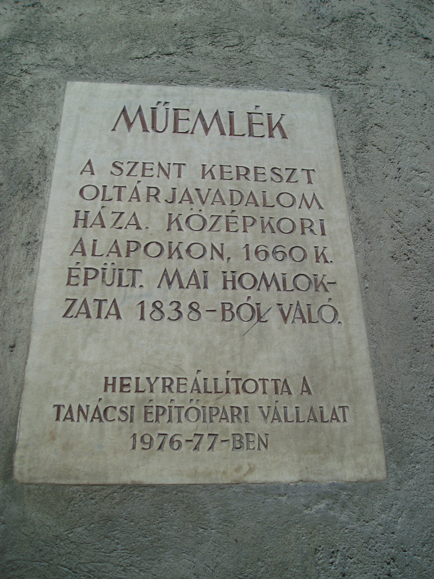 Nyilvános 925 | 1261 | Sopron, Szentlélek utca 5. | Az egykori Szent Kereszt oltárjavadalmas ház 1660 körül épült. Mai késő klasszicista homlokzata 1838-ból származik. A kép 2008 júniusában készült. Felh. irod.: Czellár Katalin: Sopron. 3. jav. kiad. Bp. Panoráma, 2000 |