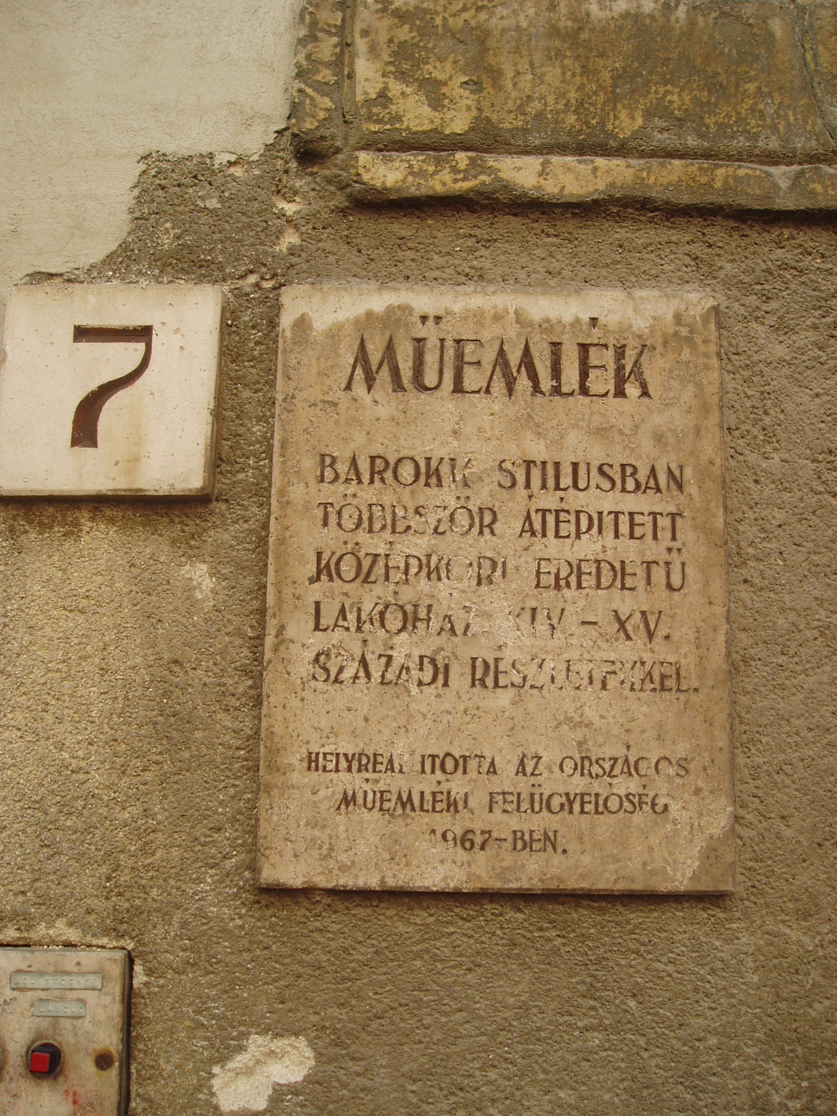 Nyilvános 951 | 1249 | Sopron, Új utca 7. | A XVIII. században barokk stílusban átépített középkori eredetű lakóház. Emeletén egy gótikus karéjos ablak maradványai láthatók. A kép 2008 júniusában készült. Felh. irod.: Czellár Katalin: Sopron. 3. jav. kiad. Bp. Panoráma, 2000 |
