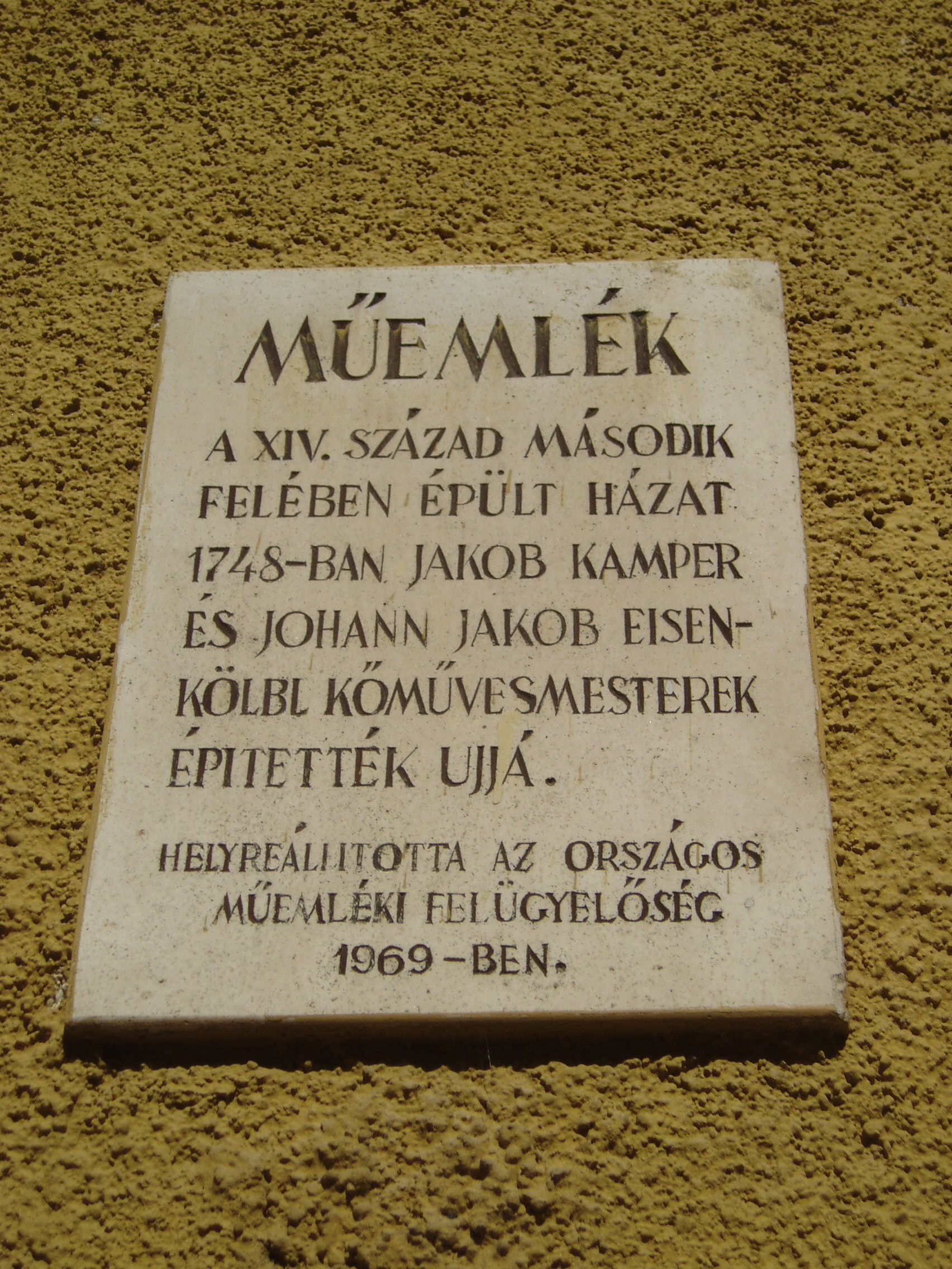 Nyilvános 928 | 1514 | Sopron, Új utca 18. | Az eredetileg a XIV. században épült lakóházat Jakob Kamper és Johann Jakob Eisenkölbl kőművesmesterek építették újjá 1748-ban. Emeletének boltozatos termeit 1780 körül készült, mitológiai jeleneteket ábrázoló freskók díszítik. A kép 2008 júniusában készült. Felh. irod.: Czellár Katalin: Sopron. 3. jav. kiad. Bp. Panoráma, 2000 |