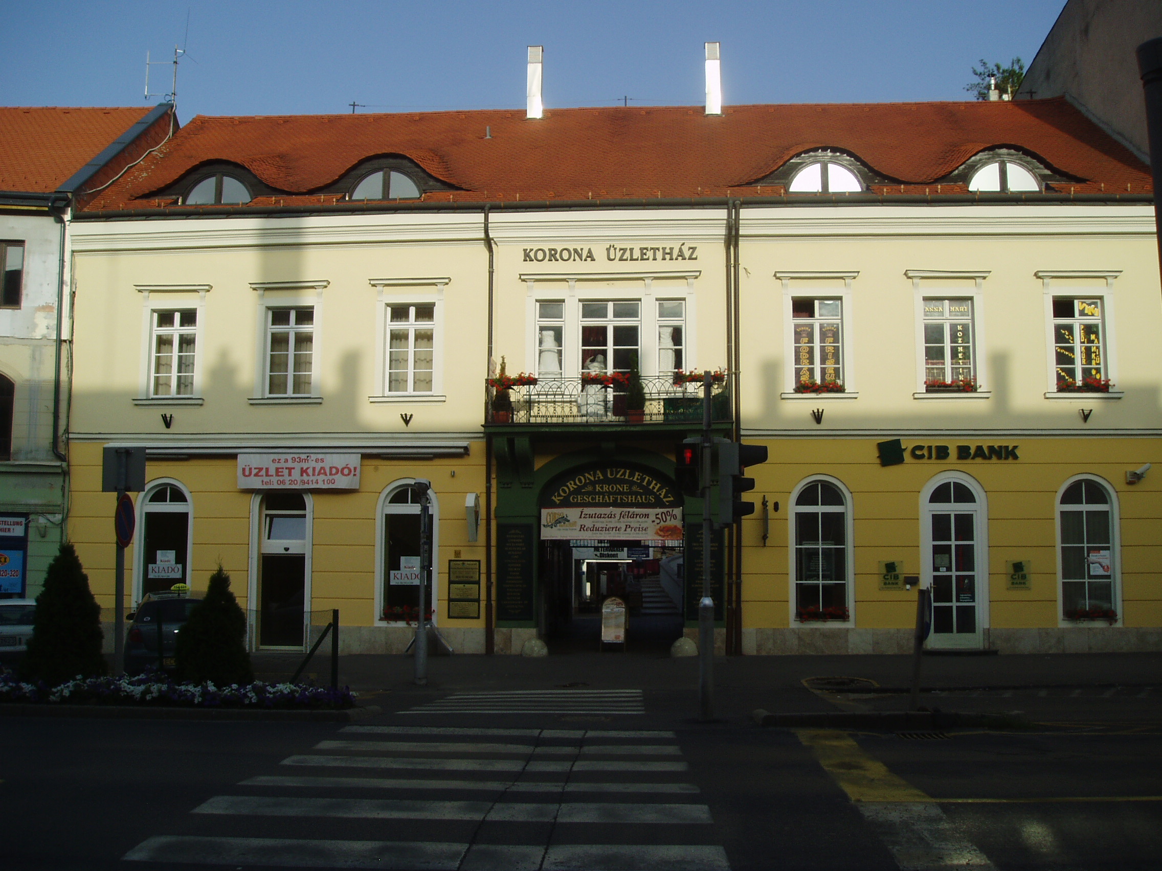 Nyilvános 936 | 2308 | Sopron, Várkerület 73. | A házban egykor vendégfogadó működött, amelyet 1595–1833 között Vörös Ökörnek hívtak, később neve Magyar Király volt. Itt szállt meg 1840-es és 1846-os soproni látogatásakor Liszt Ferenc. Az épületben ma a Korona Üzletház működik. A kép 2008 júniusában készült. Felh. irod.: Czellár Katalin: Sopron. 3. jav. kiad. Bp. Panoráma, 2000 |