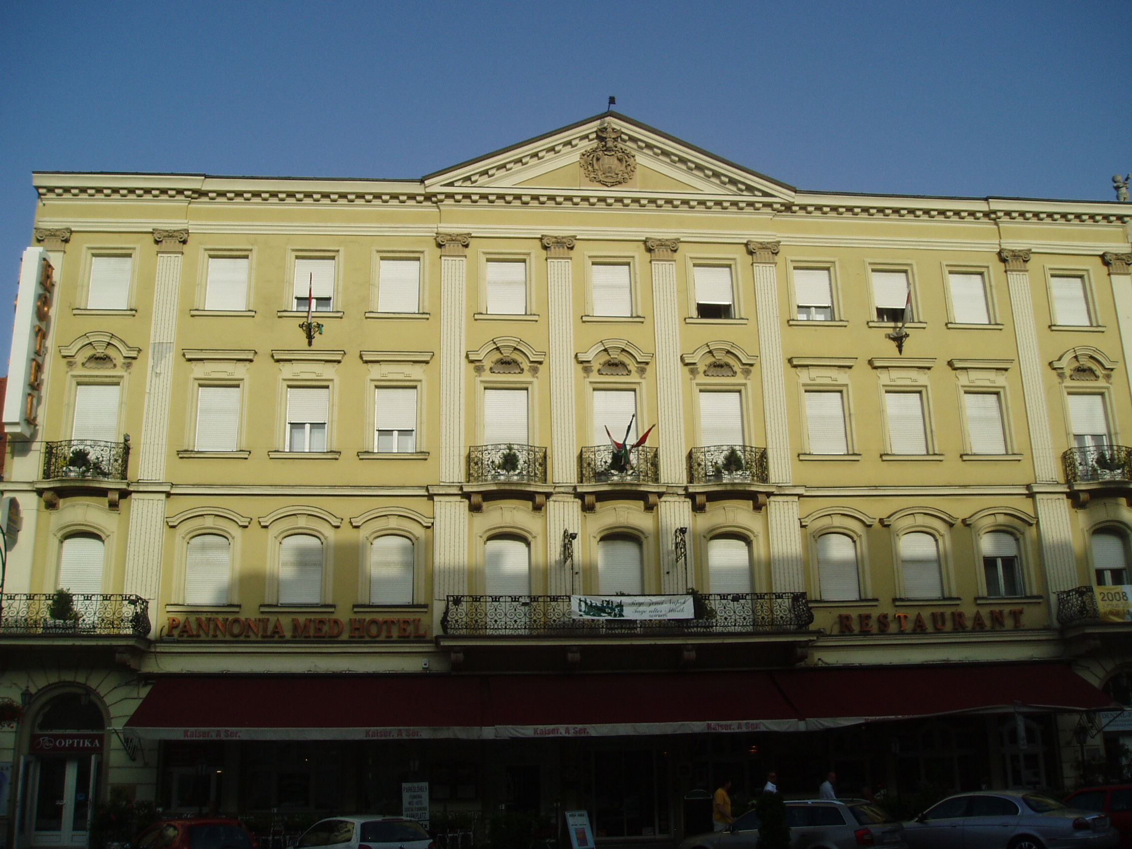 Nyilvános 931 | 1461 | Sopron, Várkerület 75. | A mai Pannónia Szálloda helyén egykor az Arany Szarvas fogadó állott, amely évszázadokon keresztül szolgált szállásul a Sopronba látogatóknak. Többször leégett, de mindannyiszor helyreállították. Csatkai Endre soproni helytörténész szerint ide tért be 1882-ben a keringőkirály, ifj. Johann Strauss is, amikor fiatal feleségével együtt — inkognitóban — a városban tartózkodott. A vendéglőben muzsikáló neves cigányprímás, Munczy Lajos tüstént felismerte, s a fogadó vendégei lelkesen köszöntötték a zeneszerzőt, aki azonban rövidesen "elmenekült" a szüntelen ünneplés elől. A patinás szállodát 1892-ben lebontották, s a következő évben Hinträger Móric tervei szerint felépült a ma is működő Pannónia. Itt szállt meg 1928. december 2-i koncertje alkalmából Bartók Béla. A kép 2008 júniusában készült. Felh. irod.: Czellár Katalin: Sopron. 3. jav. kiad. Bp. Panoráma, 2000 Csatkai Endre: A soproni muzsika története. Sopron, 1925 Nagy Alpár: Bartók Béla soproni kapcsolatai. = Életünk 1975. 5. |