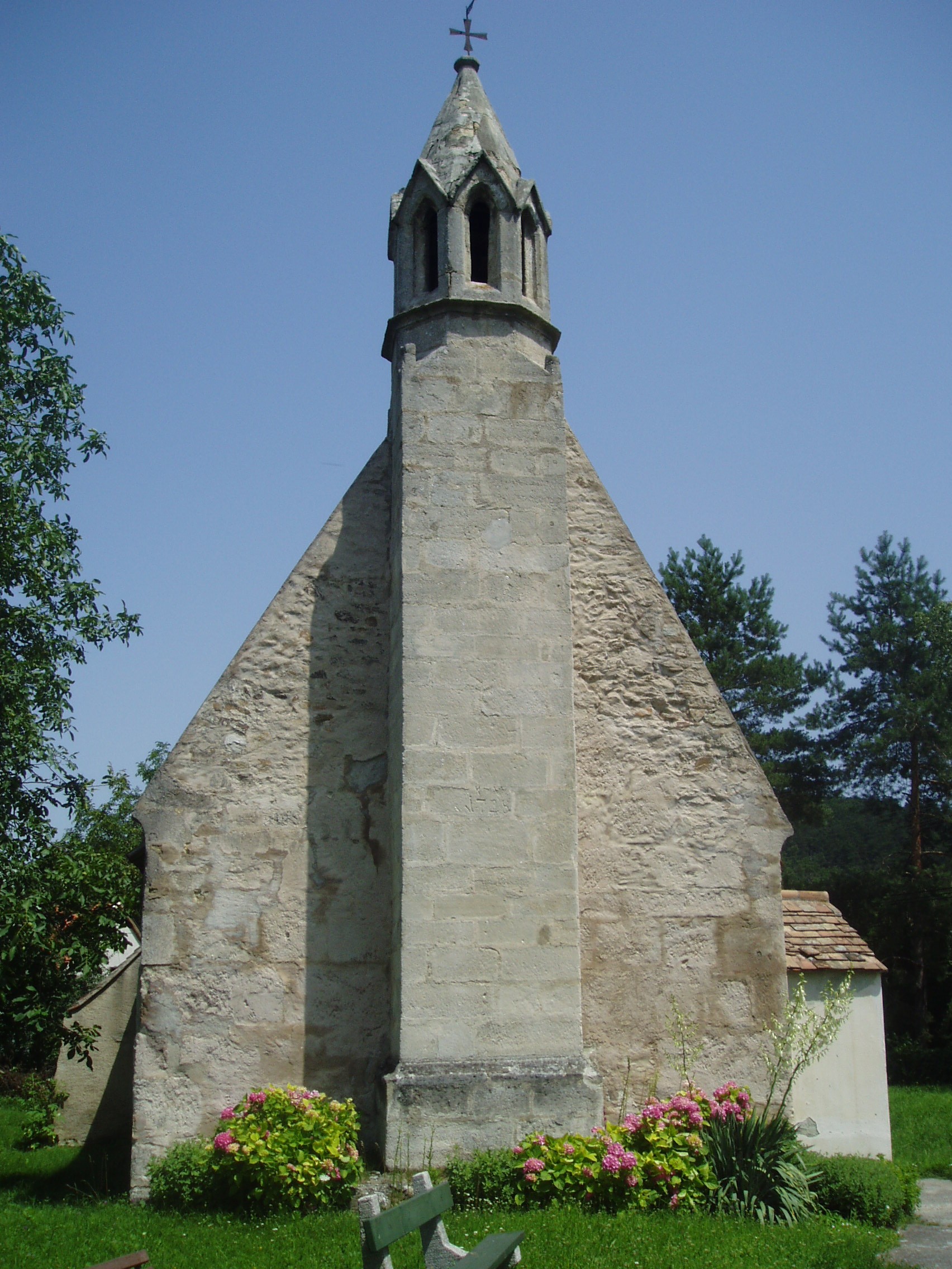 Nyilvános 1087 | 1852 | Sopronbánfalva: Bánfalvi út: Mária Magdolna-templom | A kis templom a falu egyik legértékesebb műemléke. 1291 előtt épült. Gótikus tornya a XIV. század elejéről származik, ugyancsak gótikus szentélye pedig a XV. századból. A kép 2008 júniusában készült. Felh. irod.: Czellár Katalin: Sopron. 3. jav. kiad. Bp. Panoráma, 2000 |
