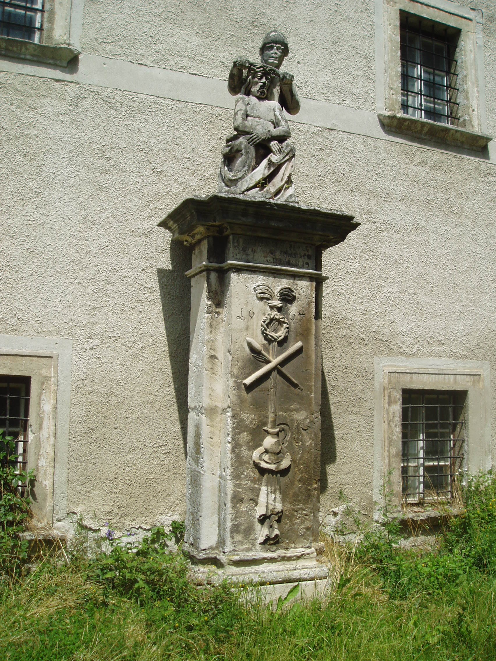 Nyilvános 1019 | 1631 | Sopronbánfalva: Kolostorhegy út: Karmelita templom és kolostor | Sopronbánfalva fölött a Sopronból Brennbergbányára vezető út déli oldán magas domb emelkedik. A dombot uraló gótikus eredetű, első formájában a XV. század végén épült templom és a hozzá csatlakozó barokk kolostorszárnyak eredetileg pálos szerzetesek, majd karmelita apácák otthona volt. Az épületegyüttest a település központjával a meredek domboldalban egyenesen húzódó díszes lépcső köti össze, amelyet karmelita-, vagy pálos lépcsőként ismer a köztudat. A lépcső hét lépcsőkarból és hét pihenőből áll. A pihenőkön, a baluszteres mellvéden jobbról-balról egy-egy szent kőszobra áll. A kép 2008 júniusában készült. Felh. irod.: Czellár Katalin: Sopron. 3. jav. kiad. Bp. Panoráma, 2000 |