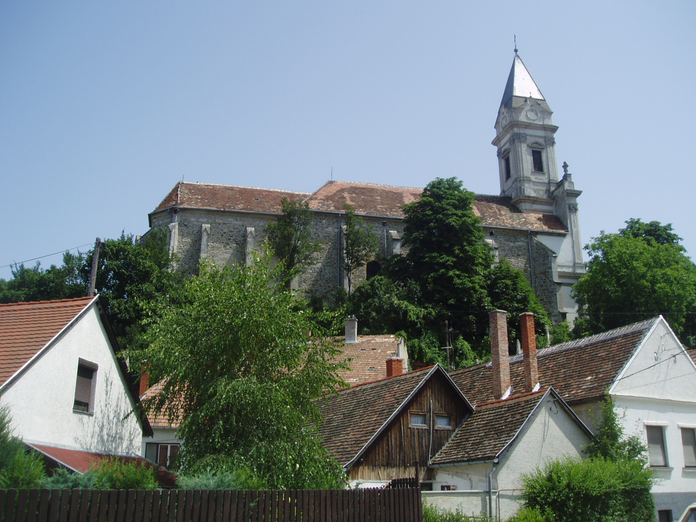 Nyilvános 1096 | 3281 | Sopronbánfalva: Kolostorhegy út: Karmelita templom és kolostor | Sopronbánfalva fölött a Sopronból Brennbergbányára vezető út déli oldán magas domb emelkedik. A dombot uraló gótikus eredetű, első formájában a XV. század végén épült templom és a hozzá csatlakozó barokk kolostorszárnyak eredetileg pálos szerzetesek, majd karmelita apácák otthona volt. Az épületegyüttest a település központjával a meredek domboldalban egyenesen húzódó díszes lépcső köti össze, amelyet karmelita-, vagy pálos lépcsőként ismer a köztudat. A lépcső hét lépcsőkarból és hét pihenőből áll. A pihenőkön, a baluszteres mellvéden jobbról-balról egy-egy szent kőszobra áll. A kép 2008 júniusában készült. Felh. irod.: Czellár Katalin: Sopron. 3. jav. kiad. Bp. Panoráma, 2000 |