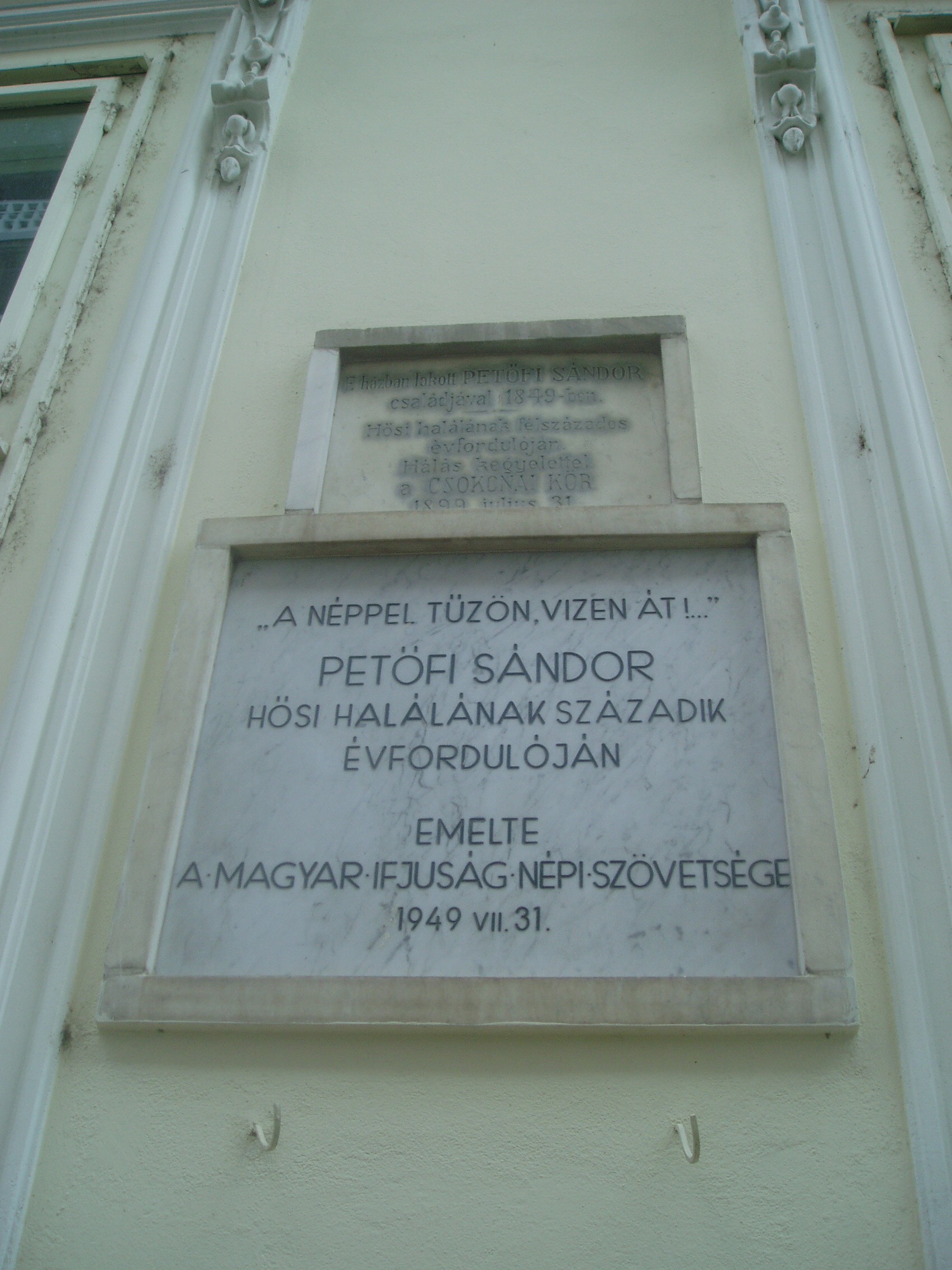 Nyilvános 1358 | 3268 | Debrecen, Batthyány utca 16. | Ebben a házban lakott Petőfi Sándor gyermeküket váró fiatal feleségével 1848/49 telén, Ormós Gábor szabómesteréknél. Itt született meg 1848. december 15-én fia, Zoltán. A nagy eseményről a költő így számolt be: "Született Zoltán fiam december 15-én 1848. déli tizenkét órakor, Debrecenben, a Harmincad utcában, az utcára nyíló kapu melletti szobában... Azaz jobban mondva: pénteki napon és ami több, Debrecenben!" Visszagondolva 1843/44 telére, amit rendkívül nyomorúságos körülmények között töltött Debrecenben, nem csoda, hogy a város nem a legjobb emlékeket hagyta a költőben. A szobában, amely az utcára nyíló kapu mellett található, ma utazási iroda van... Petőfi harcra buzdító, nagyhatású költemények egész sorát írta ebben a házban: Akasszátok fel a királyokat, Itt a nyilam, mibe lőjem, Az egész világ a harcmezőn, Európa csendes, újra csendes... és más költeményeit. Innen indult a harctérre, Bem tábornokhoz, hogy aztán már csak egy-egy napra, futó látogatásra térjen vissza családja körébe A ház homlokzatán több emléktábla is idézi az történteket. A fénykép 2006 júniusában készült. Felh. irod.: Kovács Gergelyné: Debrecen. Bp. Panoráma, 1981 Papp Antal: Debrecen. Bp. Panoráma, 1976 Petőfi emlékhelyek a Kárpát-medencében. Kiskőrös, 1996 |