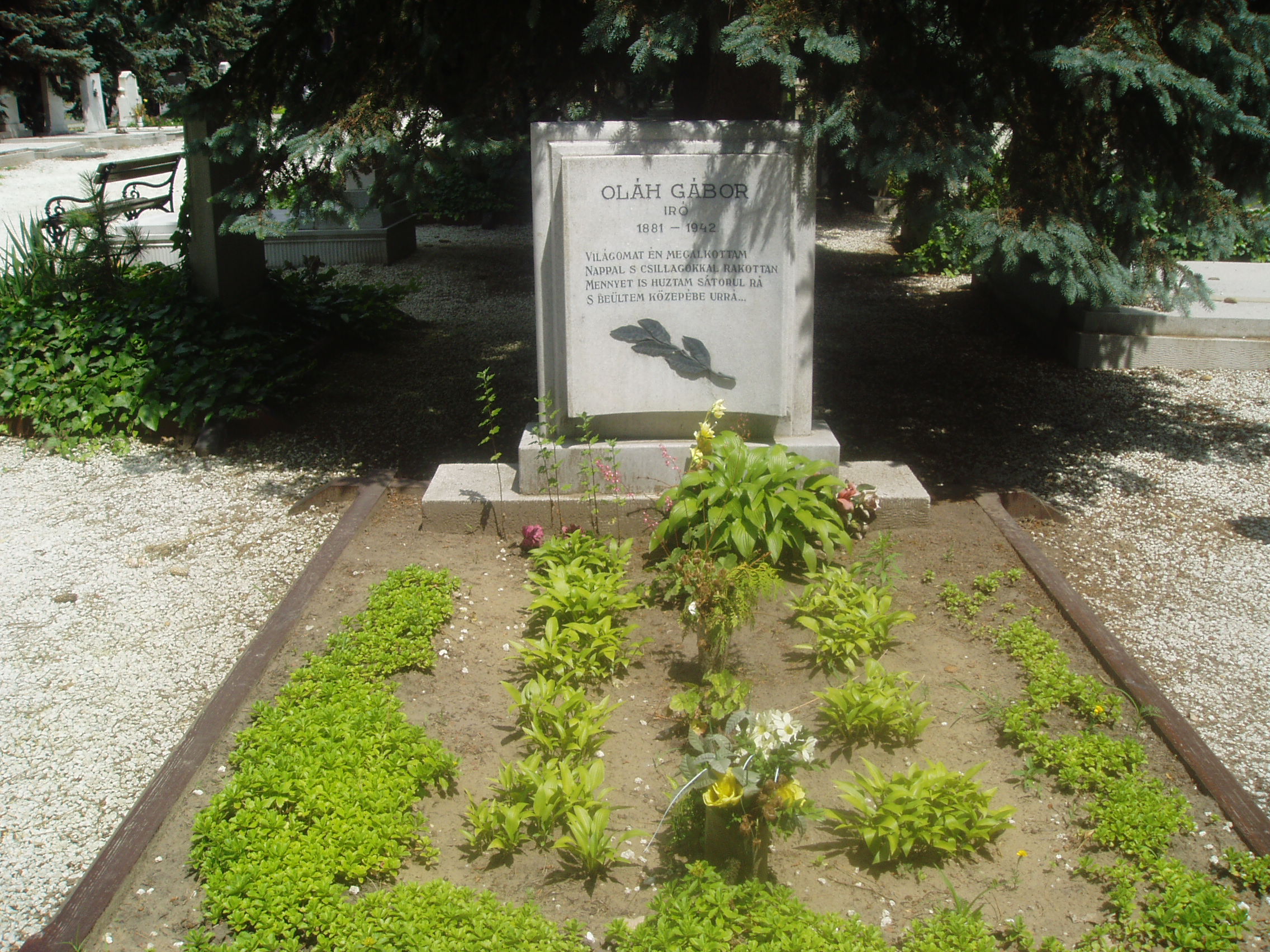 Nyilvános 1367 | 3033 | Debrecen, Bocskai út, Köztemető: Oláh Gábor sírja | Debrecen új köztemetőjét 1932-36 között alakították ki. A temetőkertet és a nagy művészettörténeti értéket képviselő ravatalozó épületét Borsos József tervezte. A díszsírhelyek a főbejárattól jobbra helyezkednek el. Itt nyugszik a magyar művelődéstörténet számos nagy alakja, akiknek földi maradványait áthozták a többnyire felszámolt régi temetőkből. Itt van Oláh Gábor (Debrecen, 1881. jan. 17. – Debrecen, 1942. jún. 23.): író, költő, újságíró, tanár sírja. A fénykép 2006 júniusában készült. Felh. irod.: Kovács Gergelyné: Debrecen. Bp. Panoráma, 1981 |