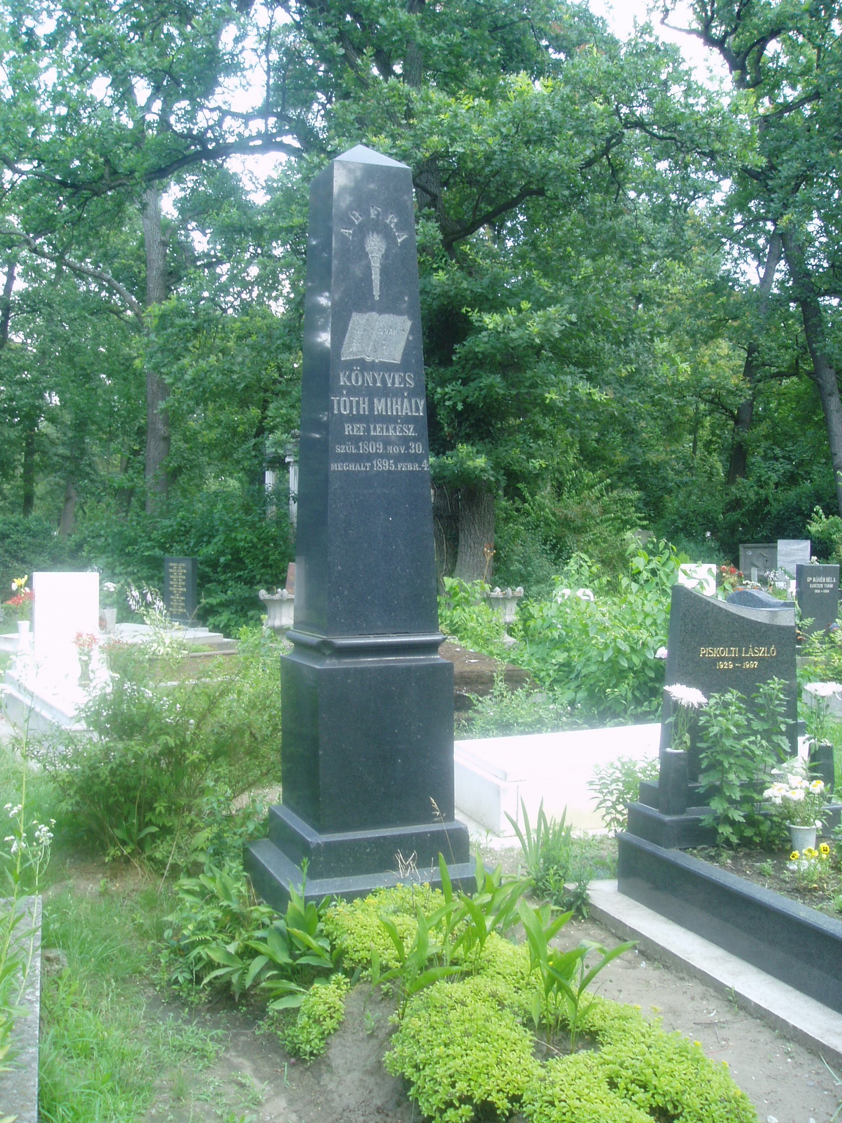 Nyilvános 1389 | 3669 | Debrecen, Bocskai út, Köztemető: Könyves Tóth Mihály sírja | Debrecen új köztemetőjét 1932-36 között alakították ki. A temetőkertet és a nagy művészettörténeti értéket képviselő ravatalozó épületét Borsos József tervezte. A díszsírhelyek a főbejárattól jobbra helyezkednek el. Itt nyugszik a magyar művelődástörténet számos nagy alakja, akiknek földi maradványait áthozták a többnyire felszámolt régi temetőkből. Itt nyugszik Könyves Tóth Mihály (Debrecen, 1809. nov. 30. – Debrecen, 1895. febr. 4.) református lelkész. 1836-tól debreceni prédikátor. A szabadságharc idején buzdító beszédeket mondott, sőt az aradi táborban is jelen volt. Ezért előbb halálra, majd húsz év várfogságra ítélték. 1856-ban kiszabadult, de hosszú ideig tilos volt lelkészi és tanítói állást elfoglalnia. 1863-tól Karcagon, 1871-től Debrecenben papként működött. Jó szónok volt, több prédikációja és halotti beszéde nyomtatásban is megjelent. (Lásd még: Debrecen, Széchenyi u. 4.) A fénykép 2006 júniusában készült. Felh. irod.: Kovács Gergelyné: Debrecen. Bp. Panoráma, 1981 Magyar életrajzi lexikon |