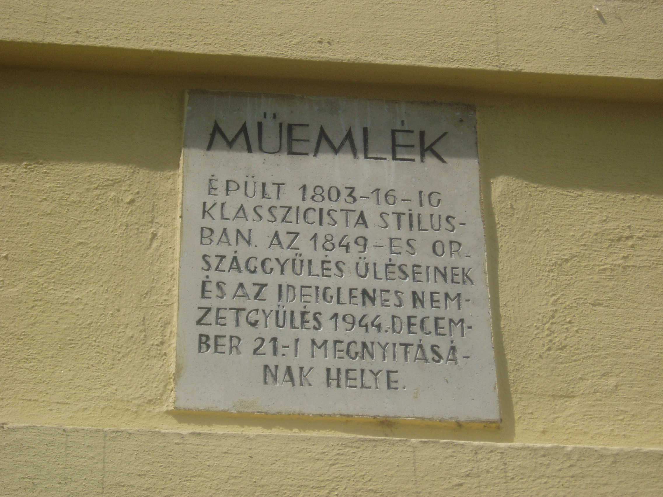 Nyilvános 1067 | 1564 | Debrecen, Széchenyi utca 1. | A Podmaniczky-ház Debrecen patinás épülete, a Piac utca és a Széchenyi utca sarkán áll. Nevét gróf Dégenfeld József, Hajdú vármegye és Debrecen főispánja feleségéről, Podmaniczky Annáról kapta. 1820-ban épült klasszicista stílusban. 1849-ben a szabadságharcos magyar kormány debreceni tartózkodásának idején e ház emeleti dísztermében tartotta üléseit az országgyűlés főrendi háza, amint arról az épületen emléktábla is tanúskodik. Az épületen elhelyezték az utcanévadó Széchenyi István emléktábláját is, aki többször is járt Debrecenben. Fiatal huszártisztként Simonyi óbester ezredében szolgált, 1840-ben pedig a Tisza szabályozásának ügyében tartózkodott a városban. Felh. irod.: Papp Antal: Debrecen. Bp. Panoráma, 1976 Kovács Gergelyné: Debrecen. Bp. Panoráma, 1981 www.debrecen.hu |