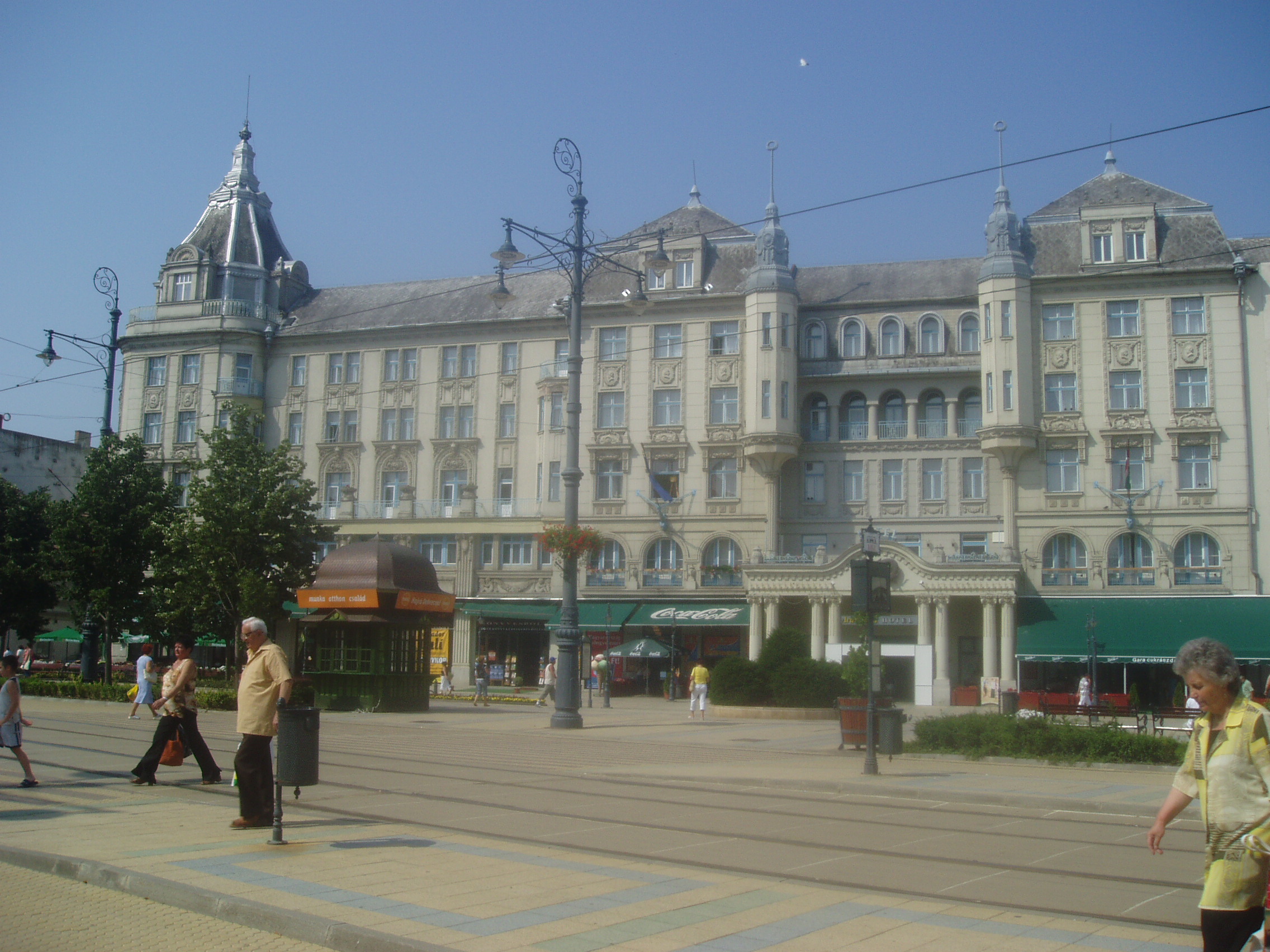 Nyilvános 1080 | 1724 | Debrecen, Piac utca 11-15. Arany Bika Szálloda | A szecessziós épületegyüttes 1913–1915 között épült Hajós Alfréd és Villányi Lajos tervei szerint. Új szárnyát 1976-ban építették hozzá. A négyemeletes főépület homlokzatán olasz kőfaragók által készített szecessziós plasztikák láthatók. A szálloda előterének két oldalát Józsa János színes üvegablakai díszítik. A régi és új szárnyat összekötő hallban egy rokokó pár életnagyságú szobra mellett vezet fel a lépcsősor az egykori díszteremhez. A ma Bartók Béláról elnevezett terem Debrecen 1500 férőhelyes, legnagyobb előadóterme. A tükörteremben Benyovszky István és Veres Géza festményei régi debreceni és hortobágyi életképeket idéznek fel. A mai Aranybika szálló helyén már a XVI. század végén vendégfogadó állt. 1699-ben árverezték el Bika András debreceni polgár egykor itt állott családi házát (a szálloda róla kapta a nevét), s benne négy vendégszobát rendeztek be. A hamarosan szűknek bizonyult, s a Rákóczi–szabadságharc idején erősen meg is rongálódott régi épületre 1799-ben emeletet húztak, majd 1809-ben ismét átépítették. Ekkor készült el vasból vert, bikát ábrázoló cégére, amely 1878-ig hirdette a közönségnek a szálló létét. 1840 körül a földszinten kávéházat nyitotak. 1848-ban egy időre Nádor szállóra keresztelték, s felsőbb parancsra a Bach–korszakban is így hívták. Az öreg épületben számos nevezetes vendég lakott, többek között Széchenyi István, Vörösmarty Mihály, Wesselényi Miklós, Deák Ferenc, Petőfi, Bem tábornok. Nagy Sándor és vezérkara 1849. augusztus 2-án innét indult a csatatérre, ahol a maroknyi magyar sereg nem tudott ellenállni a többszörös túlerőnek. Így estére már Paszkievics herceg és vezérkara ütütt a Bikában tábort s ünnepelték a diadalt, míg Debrecen lakói bezárt házakban, lefüggönyzött ablakok mögött siratták az elveszett reményeket. A XIX. század végére már nemzetközi viszonylatban is jól ismert, patinás szálló kicsinek bizonyult, ezért Steindl Imre tervei szerint pompás új épületet emeltek. A szállodával egyidejűleg kávéháza is megnyílt, első vendége Jókai Mór volt. Az új, egyemeletes szállodaépület pezsgő központja lett Debrecen szellemi és társasági életének. A debreceni írók és művészek, valamint a fővárosból idelátogató barátaik gyakran találkoztak a „közvélemény–asztalnak” nevezett irodalmi törzsasztalnál. 1913-ban elkezdték ennek az épületnek a lebontását is, s a szálló mostani épülete 1915-re lett készen. Az 1920-as években gyakori vendége volt a Bikának Móricz Zsigmond (szobáját születésének évfordulóján emléktáblával jelölték meg) és tizenöt éven át lakott benne Oláh Gábor költő. 1944/45 telén a szálloda adott otthont az Ideiglenes Nemzetgyűlés, majd az Ideiglenes Kormány tagjainak. Felh. irod.: Papp Antal: Debrecen. Bp. Panoráma, 1976 Kovács Gergelyné: Debrecen. Bp. Panoráma, 1981 300 év históriája: egy polgárváros az Aranybikában. Debrecen, Pro Millennium, 1999 |