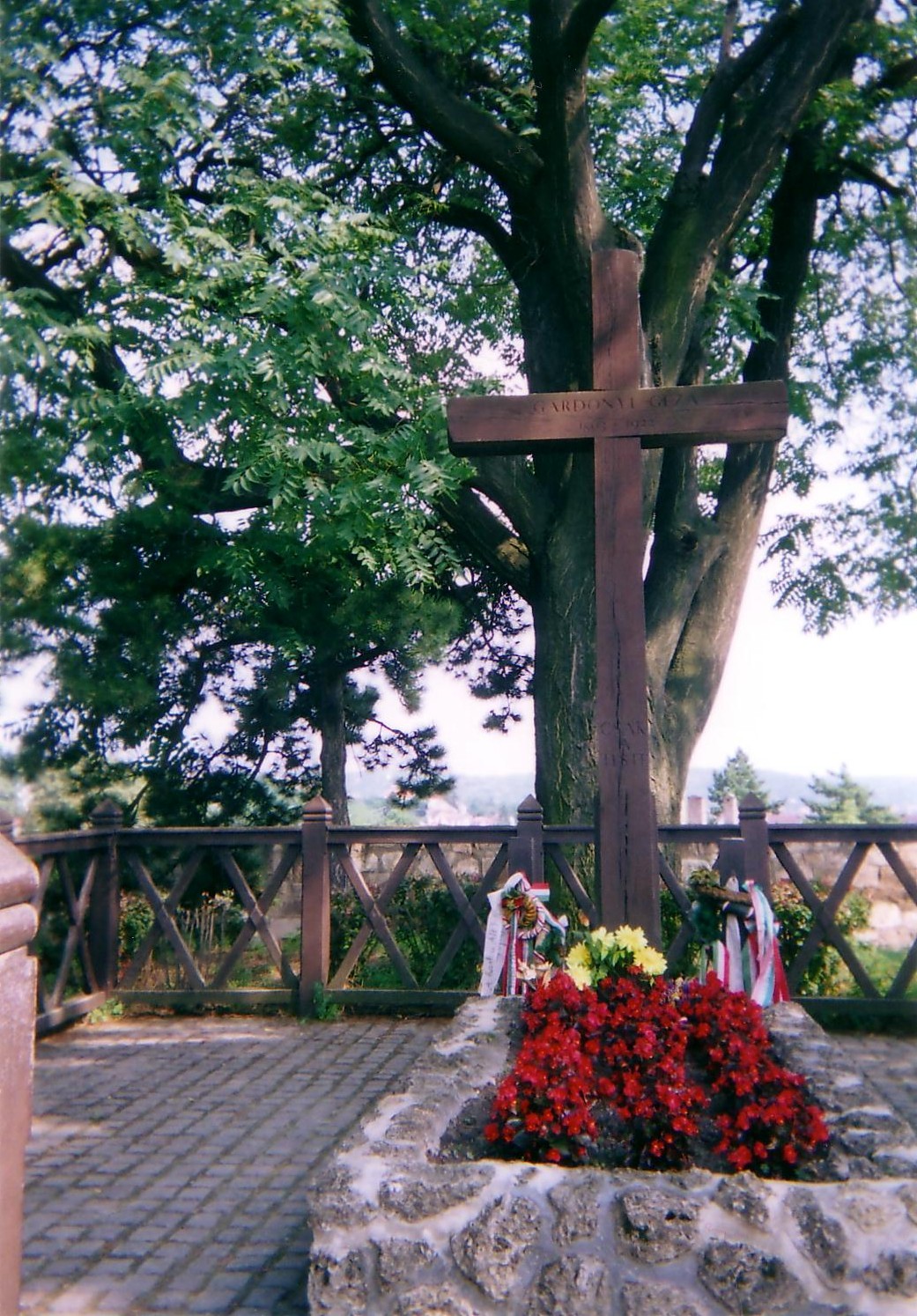 Nyilvános 1389 | 3354 | Eger, Vár: Gárdonyi Géza sírja | Gárdonyi Géza 1897-ben költözött Egerbe, s haláláig itt lakott. Otthonában hunyt el 1922. október 30-án. A vár közelében levő háza 1925 óta múzeum. A vár és vitézeinek tette a XX. században lett legendává, amikor Gárdonyi Géza itt Egerben megírta Egri csillagok című regényét. Az írót a várban, a Bebek-bástyán helyezték örök nyugalomra. Felh. irod.: Eger. Bp. Panoráma, 1973 Wellner István: Eger. Bp. Panoráma, 1987 www.vendegvaro.hu |