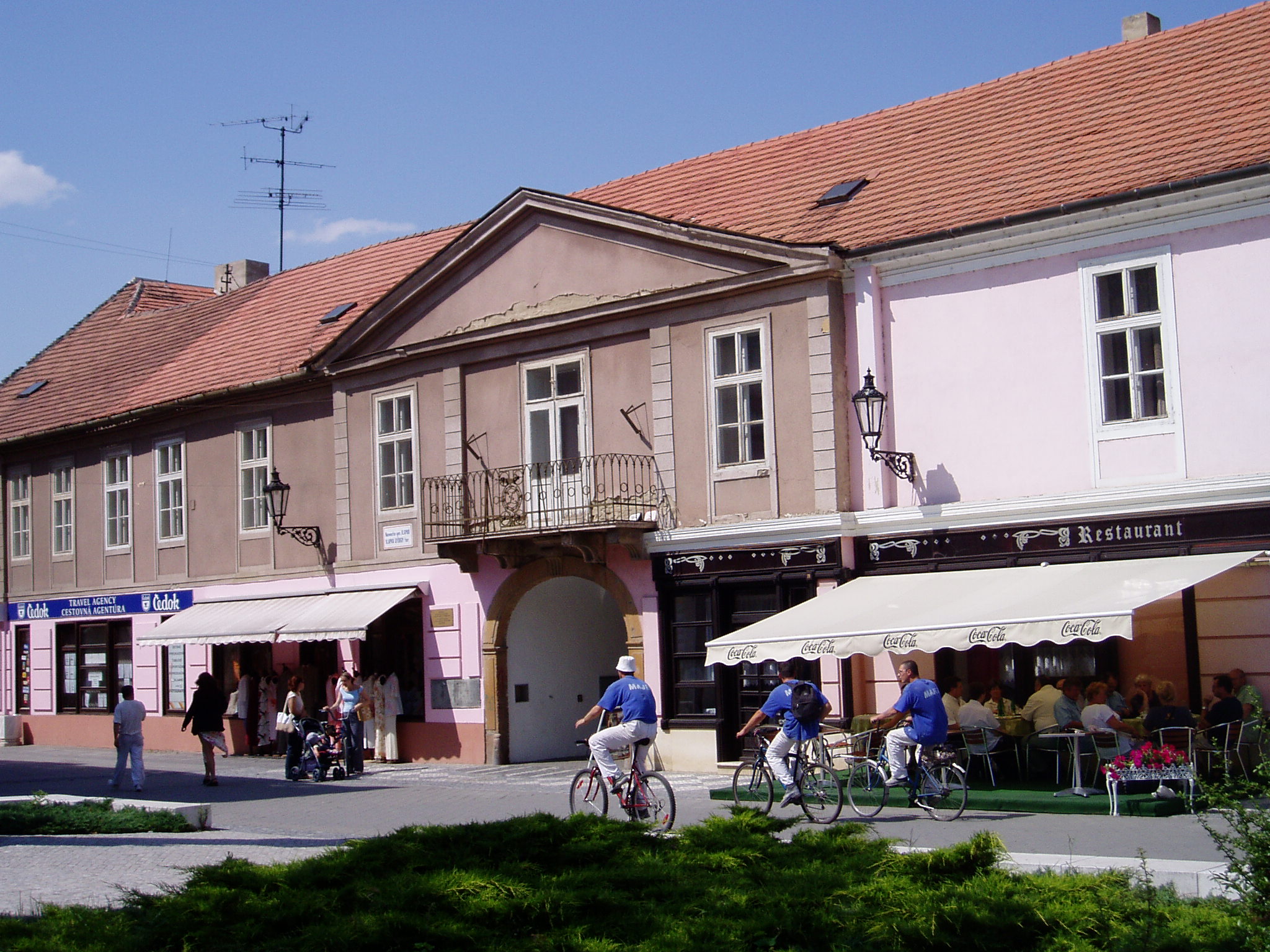 Nyilvános 1117 | 2210 | Komárom (Komárno). Klapka tér 9. Zichy-palota | A Klapka tér legnagyobb épülete a volt Zichy–palota. Zichy Miklós gróf, szabolcsi főispán építtette a XVII. század második felében. Eredetileg barokk stílusú volt, de miután a 1763-as nagy komáromi földrengés romba döntötte, klasszicista stílusban épült újjá, két épületszárnnyal bővülve. Udvarának végén az 1800-as évek elejétől 1827-ig emeletes épület állt, ennek emeleti részén tartották a táncmulatságokat és a színházi előadásokat. Az első hivatásos magyar színtársulat Komáromban Benke József és Kemény János vezetésével lépett fel 1811 májusában (ők a második pesti színtársulatból váltak ki). A társulatban ott volt Balogh István, Déry István, Láng Ádám, Murányi Zsigmond, Murányiné Lefèvre Teréz és a pályája legelején levő, tizennyolc éves Scheckenbach (Schenbach) Róza, aki később Déryné Széppataki Róza néven vált a magyar játékszín történetének állócsillagává. Legközelebb Balogh István székesfehérvári társulata jutott el Komáromba, valamikor 1813 és 1815 között. Szinnyei József szerint ennek a társulatnak Katona József is tagja volt, s Idegen művésznéven fellépett itt a Hamlet címszerepében és saját, Luca széke című darabjában. 1819 októberében Kilényi Dávid kecskeméti társulata érkezett a városba. Előadásaikról Ásvay Jókay József, Jókai Mór édesapja tudósított a helyi sajtóban. A közelmúltban a Zichy–palota udvarán építették ki az ún. Európa udvart. A helyi viszonylatban gigantikus méretű vállalkozás célja, hogy élőben mutassa be harmincöt európai ország építészetét. A városrész egyben Komárom új szolgáltató központja is, üzletekkel, éttermekkel, kávézókkal, valamint egy föld alatti bevásárlóközponttal. A palota első emeletén (bejárat a képen látható kapun a Szentháromság-szobor mellett) a város két híres szülötte, Jókai Mór és Lehár Ferenc emlékkiállítása látható. Különösen a Jókai-kiállítás gazdag eredeti relikviákban. A fénykép 2005. júliusában készült. Felh.irod.: www.komarno.sk Mácza Mihály: Komárom nevezetességei. Pozsony, Madách-Posonium, 2002 Szénássy Zoltán: Rév–Komárom. KT Kiadó, 1998 Tóth László: "...miként hajdan az apostolok" : a komáromi magyar színjátszás története. Dunaszerdahely, Lilium Aurum, 1997 |