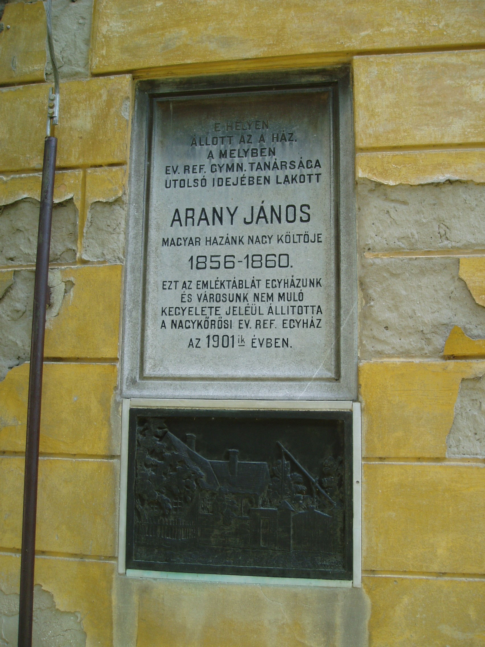 Nyilvános 1454 | 3295 | Nagykőrös, Hősök tere 4. | Itt, ahol ma a tanítóképző intézet sarka áll, korábban egyházi épület volt. Abban lakott Arany János nagykőrösi tanársága utolsó idejében, 1856 és 1860 között. Az épület Hősök tere felőli oldalán már 1901-ben emléktáblát állítottak. A fénykép 2006 augusztusában készült. Felh. irod.: Törös László: A nagykőrösi Arany emlékek katalógusa. = A nagykőrösi művelődés hármas kis tüköre. Nagykőrös, 1935 |
