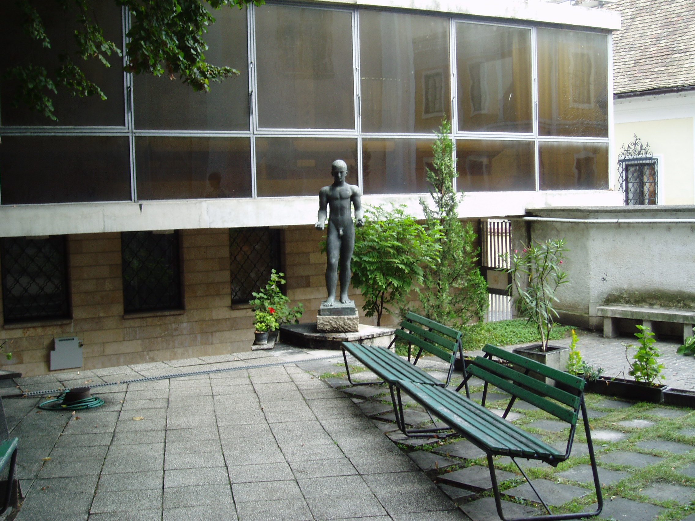 Nyilvános 1164 | 2229 | Szentendre, Fő tér 6. Ferenczy Károly Múzeum | A Ferenczy Károly Múzeum az egykori ortodox szerb iskola copf stílusú, 1793-ból származó, Oesner Antal József tervezte épületében kapott helyet. A fényképen látható udvar felőli, modern szárnya 1972-ben, Cifka Anna tervei alapján készült. Az 1951-ben alapított múzeum az imresszionizmus egyik legnagyobb magyar mesteréről, Ferenczy Károly (1862-1917) festőművészről kapta a nevét, aki 1889-92-ben Szentendrén élt és alkotott. Gyermekei közül az ikertestvérek: Noémi, a gobelinművész és Béni, a szobrász 1890-ben itt születtek (lásd: Szentendre, Alkotmány u. 1.). A múzeum állandó kiállításon a Ferenczy művészcsalád alkotásai láthatók (Ferenczy Károlyné Fialka Olga is jeles festőművész volt). De gazdag a gyűjtemény más szentendrei művészek munkáit őrzőt képzőművészeti alkotásokban, elsősorban római kori régészeti leletekben, valamint helytörténeti és a környék hagyományait bemutató néprajzi tárgyakban, dokumentumokban is. A fénykép 2005 szeptemberében készült. Felh. irod.: http://pmmi.hu/muzeumok/ferenczy/index.htm Szentendre. Szerk. Sándyné Wolf Katalin. Szentendre, 1985 www.vendegvaro.hu |