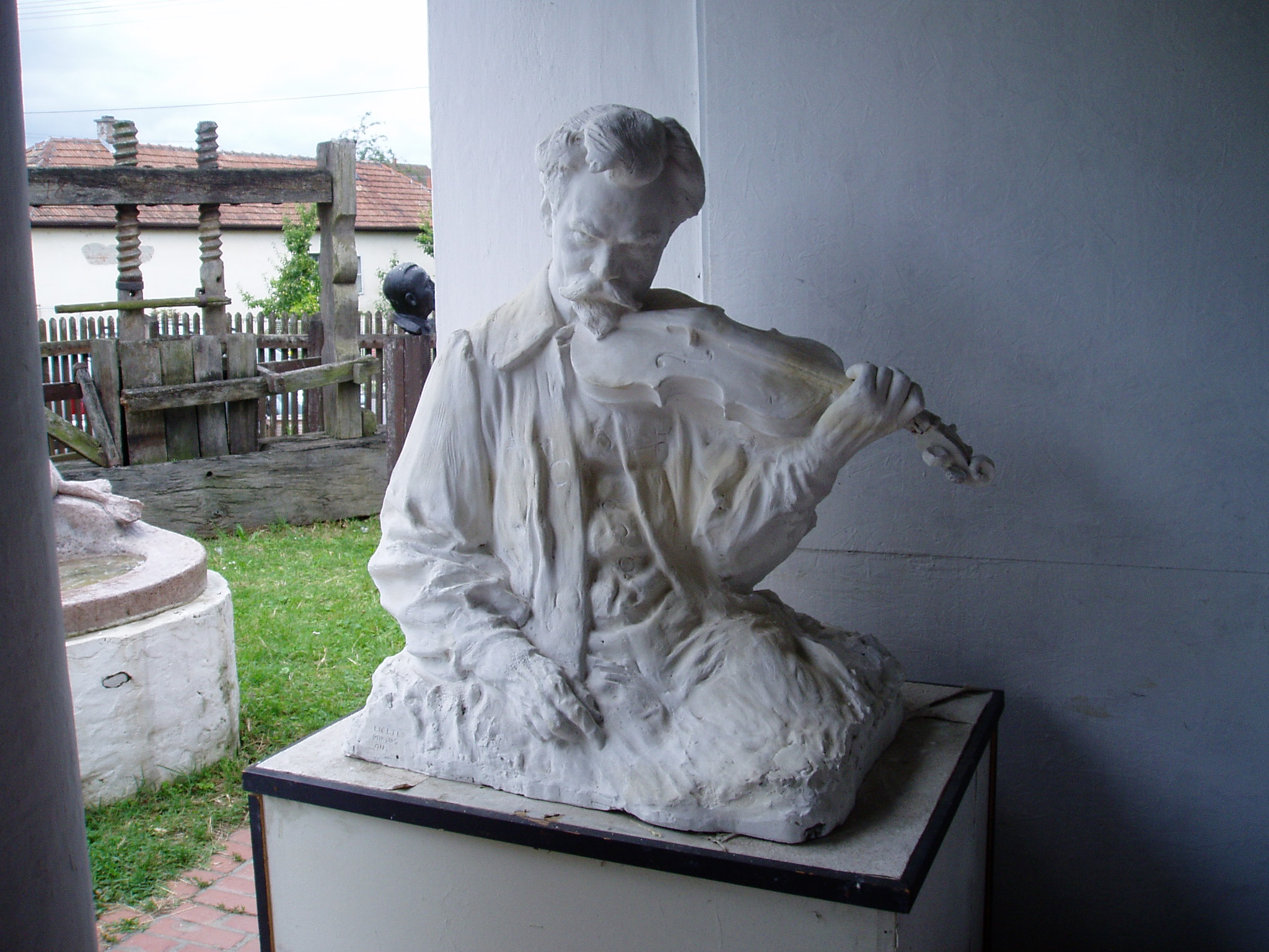 Nyilvános 1476 | 4243 | Balatonlelle, Kossuth utca 35. Kapoli Múzeum | Az 1700-as évek végén épült, szépen rendbe hozott parasztház ad otthont a Kapoli Múzeumnak. A földszinten két állandó kiállítást, a tetőtérben neves kortárs művészek időszaki kiállítását tekintheti meg a közönség. Láthatók idősebb és ifjabb Kapoli Antal somogyi pásztor-faragómesterek, kiváló népművészek munkái és Ligeti Miklós szobrászművész - többek között az Anonymus és Déryné szobrok alkotójának, Rodin tanítványának - művei. A képen: Ligeti Miklós Hubay Jenő hegedűművészről és zeneszerzőről készített portrészobra. A fénykép 2005 júliusában készült. Felh. irod.: Ligeti Gábor: Balatonlelle. Lellei séták. Bp. Tájak, Korok, Múzeumok Kiskönyvtára 559. 1998 |