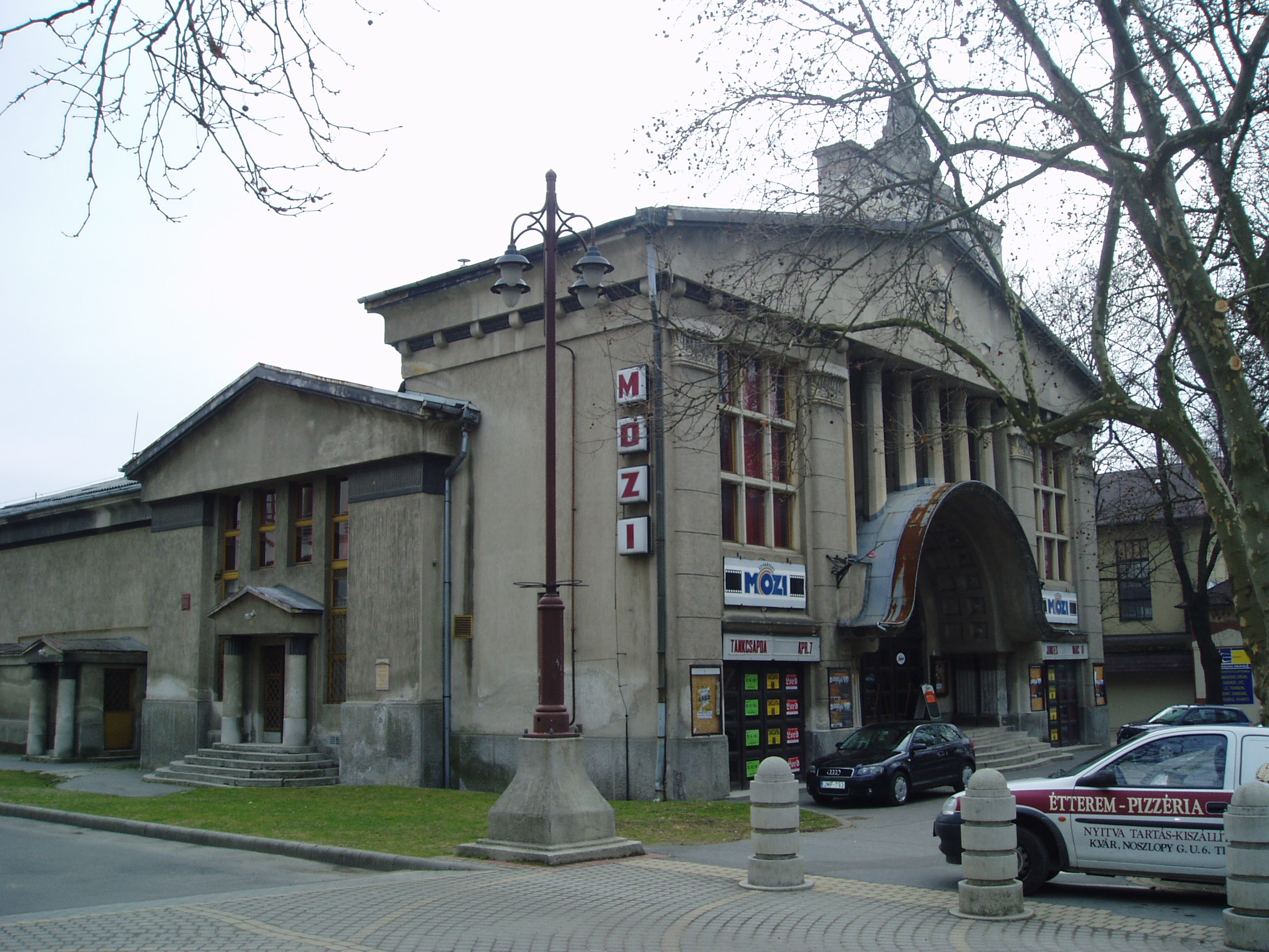 Nyilvános 1007 | 1764 | Kaposvár, Noszlopy Gáspár utca 5. | A Szivárvány mozi (ma Szivárvány Zeneház) szecessziós stílusú épületét 1927/28-ban építették Lamping József tervei alapján. Az épület belseje különösen díszes: növényeket ábrázoló festmények magyaros motívumokkal, mennyezetén pedig az egyiptomi, szárnyas napkorong látható. A fénykép 2006 márciusában készült. Felh. irod.: Kaposvár és környéke. Kaposvár, Infomark, 2002 Látnivalók Somogy megyében. Miskolc, Well-PRess, 2000 /Vendégváró/ |