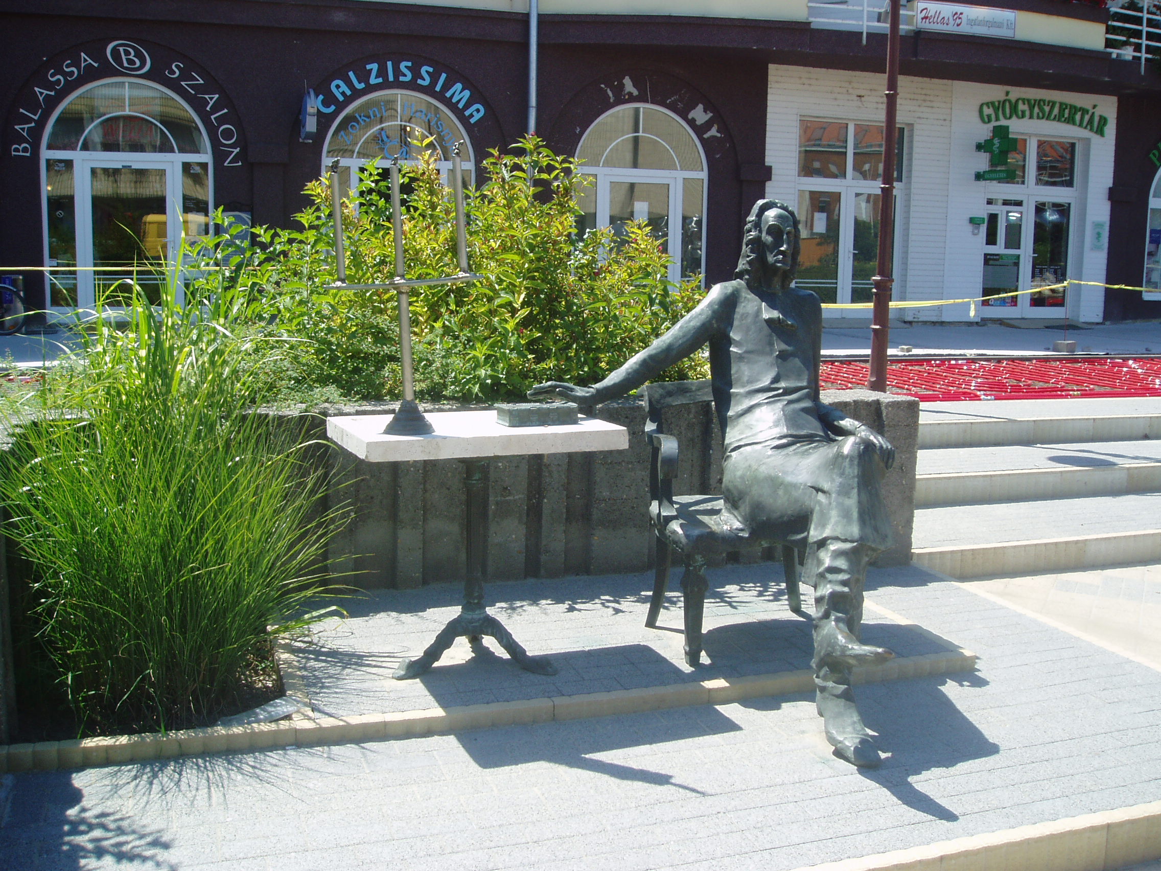 Nyilvános 1077 | 2010 | Siófok, Fő tér: Varga Imre: Professzor | Varga Imre szobrászművész 1923. november 1-jén született Siófokon. Már gyermekkorában - a siófoki elemi iskolában - rendkívül jó rajzkészségével tűnt ki. 13 évesen szerepelt egy képével Párizsban. A képzőművészet terén elért kimagasló érdemeiért, amellyel Magyarország és Siófok város hírnevét is öregbítette, 1985-ben ő lett Siófok város első díszpolgára. Hazai és külföldi tereken, templomokban, középületekben mintegy 300 alkotását helyezték el. Szobrai állnak Belgiumban, Franciaországban, Lengyelországban, Németországban, Norvégiában és Izraelben. Siófokon a Fő téren szabadtéri szoborkiállítása látható. Profeszor című szobra a debreceni Református Kollégium (lásd: Hajdú-Bihar megye: Debrecen, Kálvin tér 16.) legendás tanárának, Hatvani Istvánnak, a "magyar Faust"-nak állít emléket. Eredeti példánya a Nagyerdőben, a Debreceni Egyetem kémiai intézetének közelében látható. A fénykép 2006 júliusában készült. Felh. irod.: http://www.siofok.com/uj/object/varga-hu.html |