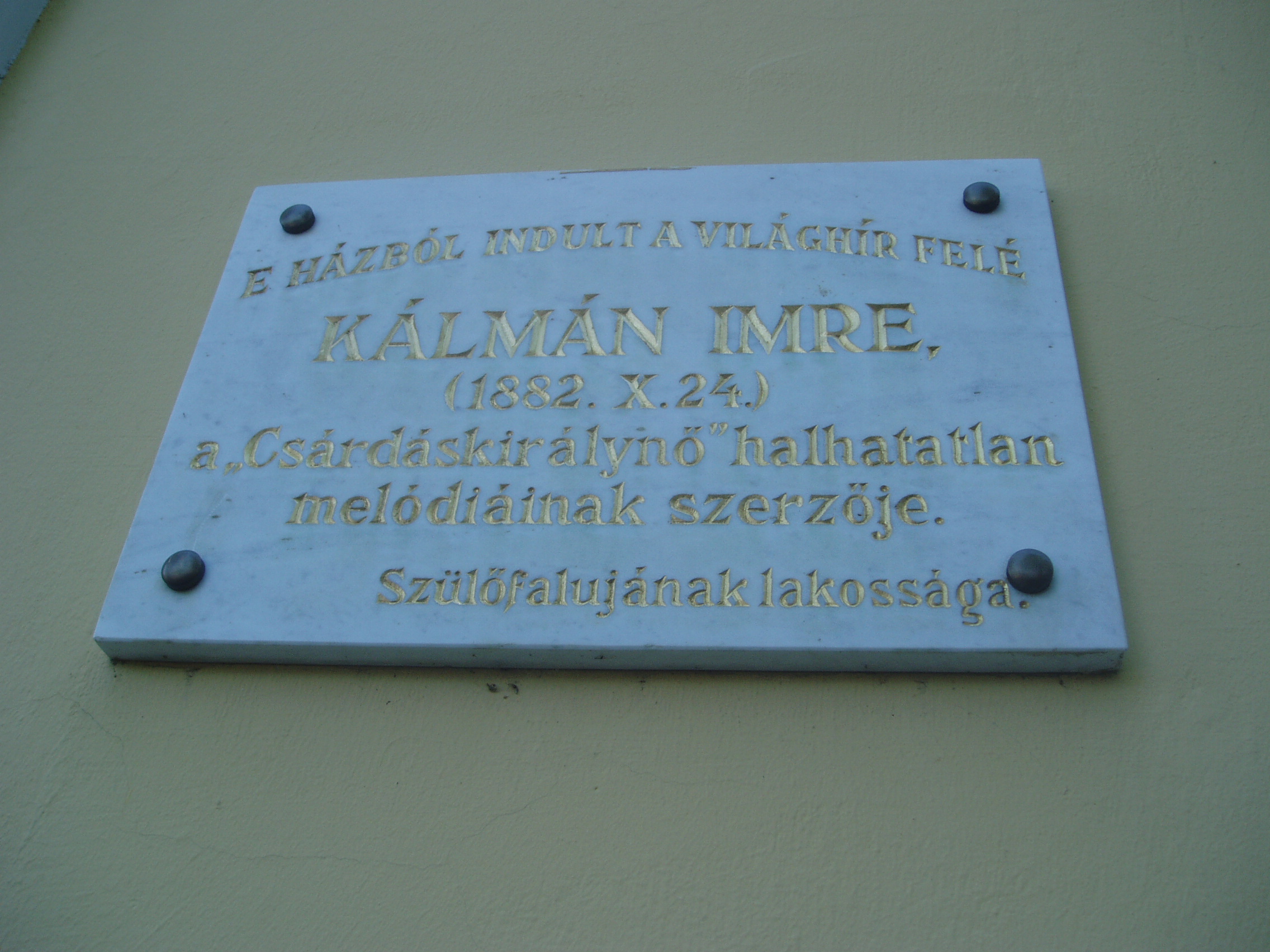 Nyilvános 1064 | 1894 | Siófok, Kálmán Imre sétány 5. | Ebben a vasútállomáshoz közeli házban született 1882-ben a magyar operett egyik legjelentősebb zeneszerzője, Kálmán Imre. Születése napja bizonytalan, még a család sem tudta eldönteni, hogy október 24-én, vagy 25-én jött-e a világra. Édesapja Koppstein Károly Siófokon gabonakereskedő és vállalkozó volt. Édesanyja Singer Paula - szelíd, művészlelkű asszony - megérte fia világhírét. Kálmán Imre a harmadik gyerekként született. Nevét később, a gimnáziumi évek alatt magyarosította Kálmánra. A kis Imre korán tanújelét adta zenei érdeklődésének, tehetségének, amit a családból hozott magával: felmenői között anyai ágon muzsikusok, apai ágon kiváló rabbik, tanítók voltak. Még nem volt hat éves, amikor egy nyáron náluk vett ki szobát Liedl Ferenc hegedűművész, tőle kapott először a kisfiú zenei leckéket. Gyermekként járt először színházban is, a házuk közvetlen szomszédságában egykor állott Nyári Színkörben (lásd: Siófok, Kálmán Imre sétány 6.). Elemi iskolai tanulmányait az egytanerős izraelita népiskolában végezte. Első hivatásos zenetanára még elemista korában a helybeli Remcsák Antal volt. Elemi iskoláinak befejeztével Budapesten tanult tovább a Deák téri Evangélikus Főgimnáziumban. Közben édesapja üzleti vállalkozásai teljesen tönkrementek, mindenüket elárverezték, s a család elhagyta Siófokot. Kálmán Imre a budapesti Zeneakadémián végzett tanulmányai mellett családi követelésre jogot is hallgatott. S bár a Zeneakadémián — ahol évfolyamtársa volt például Bartók Béla — még szimfóniákról álmodott, operettszerzőként lett világhírű. Siófoki szülőházában — amelyet először 1955-ben jelöltek meg emléktáblával — 1970-ben özvegye, Kálmán Vera jelenlétében avattak emlékszobát. A mostani, gazdagabb anyagú emlékmúzeumot a zeneszerző születésének 105. évfordulója alkalmából, 1987. október 22-én nyitották meg. Jelenleg az emlékmúzeum a szülőház földszinti termeiben található, az emeleten kortárs képzőművészeti időszaki kiállításokat szoktak rendezni. A fénykép 2006 júliusában készült. Felh. irod.: Kálmán Imre Múzeum Siófok. Szerk. Koch József. Siófok, 2000 http://www.kalmanimre-muzeum.hu/ |