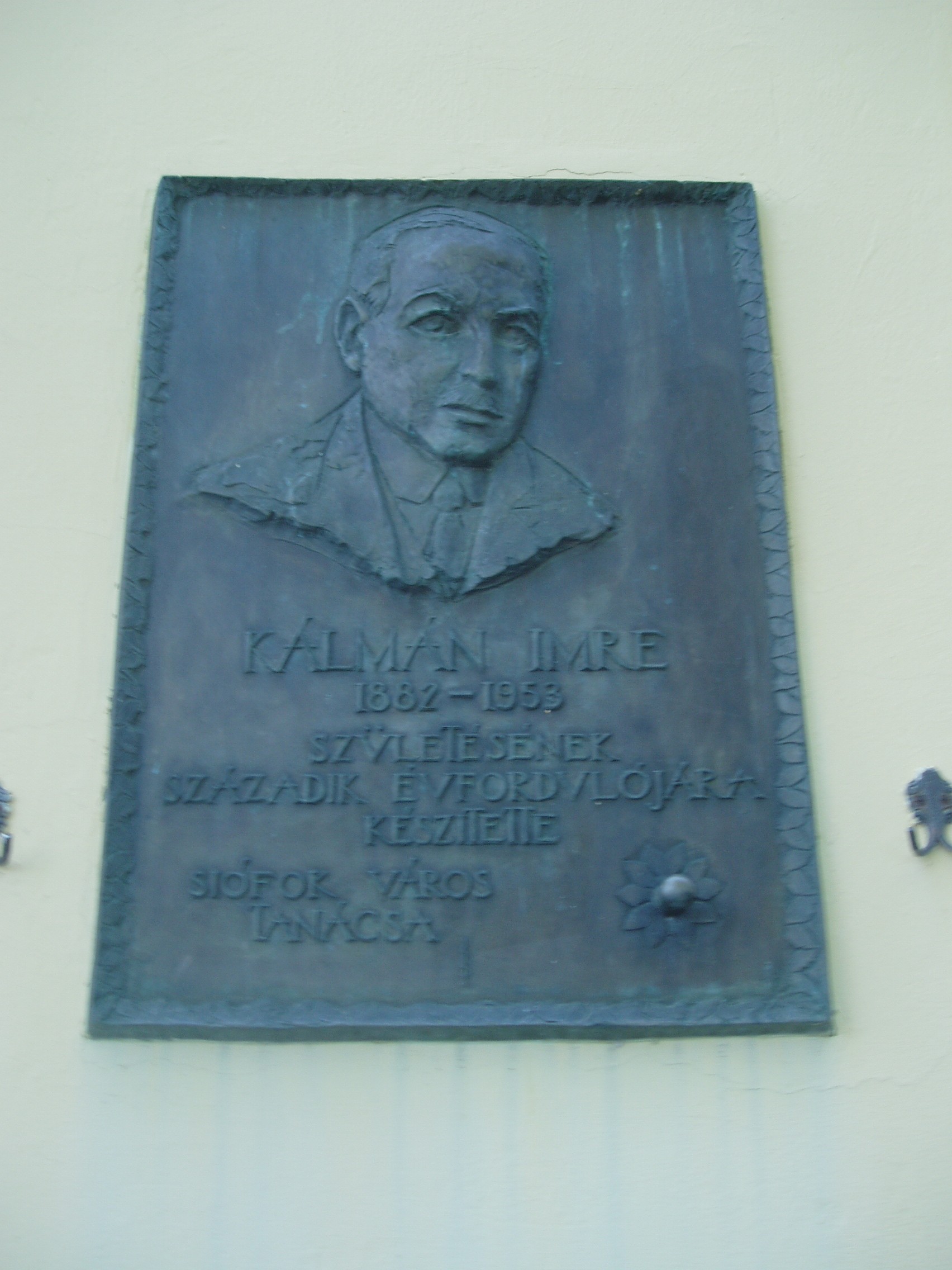 Nyilvános 1192 | 2035 | Siófok, Kálmán Imre sétány 5. | Ebben a vasútállomáshoz közeli házban született 1882-ben a magyar operett egyik legjelentősebb zeneszerzője, Kálmán Imre. Születése napja bizonytalan, még a család sem tudta eldönteni, hogy október 24-én, vagy 25-én jött-e a világra. Édesapja Koppstein Károly Siófokon gabonakereskedő és vállalkozó volt. Édesanyja Singer Paula - szelíd, művészlelkű asszony - megérte fia világhírét. Kálmán Imre a harmadik gyerekként született. Nevét később, a gimnáziumi évek alatt magyarosította Kálmánra. A kis Imre korán tanújelét adta zenei érdeklődésének, tehetségének, amit a családból hozott magával: felmenői között anyai ágon muzsikusok, apai ágon kiváló rabbik, tanítók voltak. Még nem volt hat éves, amikor egy nyáron náluk vett ki szobát Liedl Ferenc hegedűművész, tőle kapott először a kisfiú zenei leckéket. Gyermekként járt először színházban is, a házuk közvetlen szomszédságában egykor állott Nyári Színkörben (lásd: Siófok, Kálmán Imre sétány 6.). Elemi iskolai tanulmányait az egytanerős izraelita népiskolában végezte. Első hivatásos zenetanára még elemista korában a helybeli Remcsák Antal volt. Elemi iskoláinak befejeztével Budapesten tanult tovább a Deák téri Evangélikus Főgimnáziumban. Közben édesapja üzleti vállalkozásai teljesen tönkrementek, mindenüket elárverezték, s a család elhagyta Siófokot. Kálmán Imre a budapesti Zeneakadémián végzett tanulmányai mellett családi követelésre jogot is hallgatott. S bár a Zeneakadémián — ahol évfolyamtársa volt például Bartók Béla — még szimfóniákról álmodott, operettszerzőként lett világhírű. Siófoki szülőházában — amelyet először 1955-ben jelöltek meg emléktáblával — 1970-ben özvegye, Kálmán Vera jelenlétében avattak emlékszobát. A mostani, gazdagabb anyagú emlékmúzeumot a zeneszerző születésének 105. évfordulója alkalmából, 1987. október 22-én nyitották meg. Jelenleg az emlékmúzeum a szülőház földszinti termeiben található, az emeleten kortárs képzőművészeti időszaki kiállításokat szoktak rendezni. A fénykép 2006 júliusában készült. Felh. irod.: Kálmán Imre Múzeum Siófok. Szerk. Koch József. Siófok, 2000 http://www.kalmanimre-muzeum.hu/ |