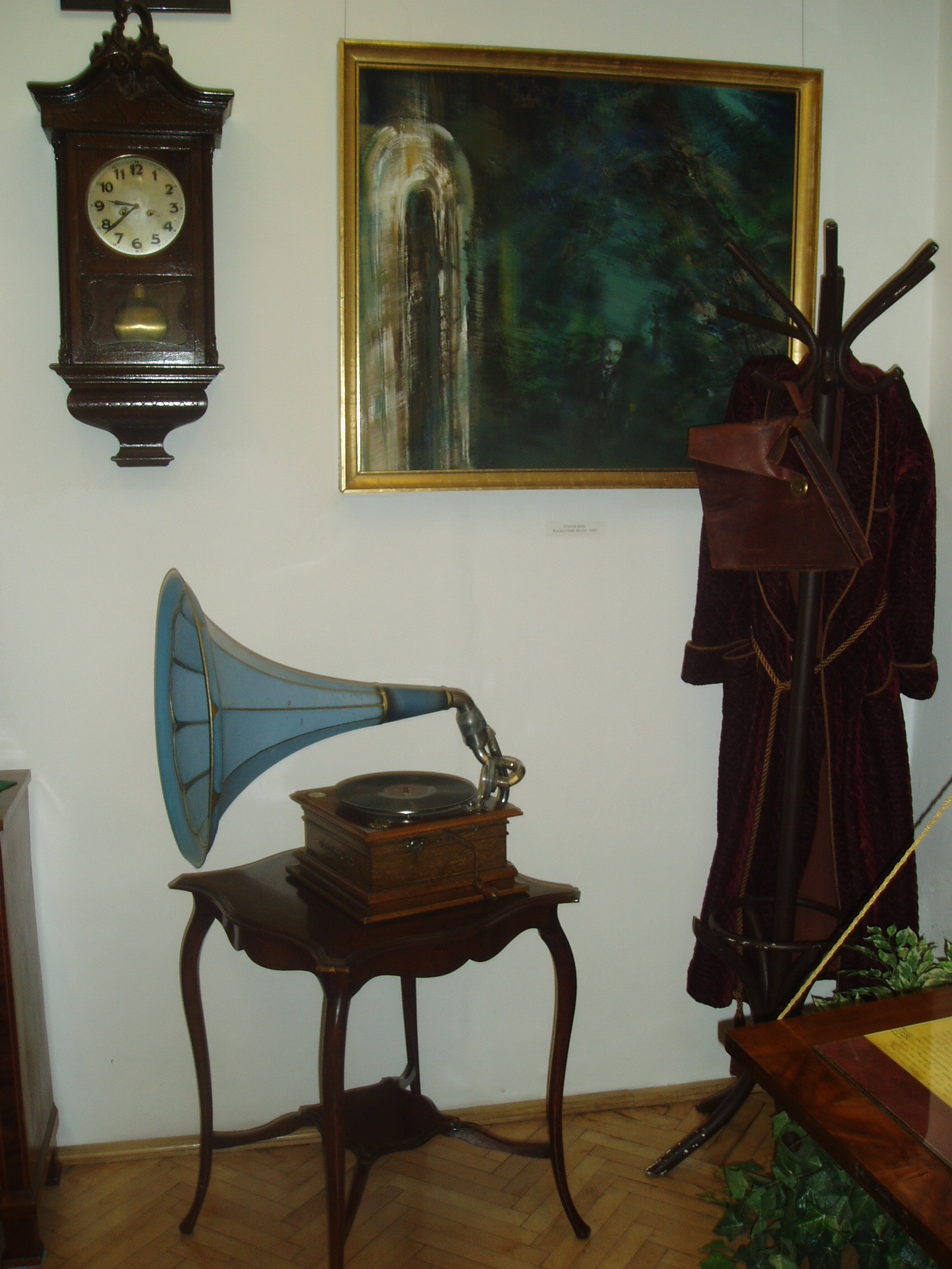Nyilvános 1101 | 2048 | Siófok, Kálmán Imre sétány 5. | Ebben a vasútállomáshoz közeli házban született 1882-ben a magyar operett egyik legjelentősebb zeneszerzője, Kálmán Imre. Szülőházában — amelyet először 1955-ben jelöltek meg emléktáblával — 1970-ben özvegye, Kálmán Vera jelenlétében emlékszobát avattak. A mostani, gazdagabb anyagú emlékmúzeumot a zeneszerző születésének 105. évfordulója alkalmából, 1987. október 22-én nyitották meg. Jelenleg az emlékmúzeum a szülőház földszinti termeiben található, az emeleten kortárs képzőművészeti időszaki kiállításokat szoktak rendezni. Kálmán Imre számos személyes tárgyát állították itt ki enteriőr-szerűen, köztük bordó háziköntösét és kedves "daloló gép"-ét, amely mellett gyakran hallgatott zenét - talán éppen ebben a köntösben. A fénykép 2006 júliusában készült. Felh. irod.: Kálmán Imre Múzeum Siófok. Szerk. Koch József. Siófok, 2000 http://www.kalmanimre-muzeum.hu/ |