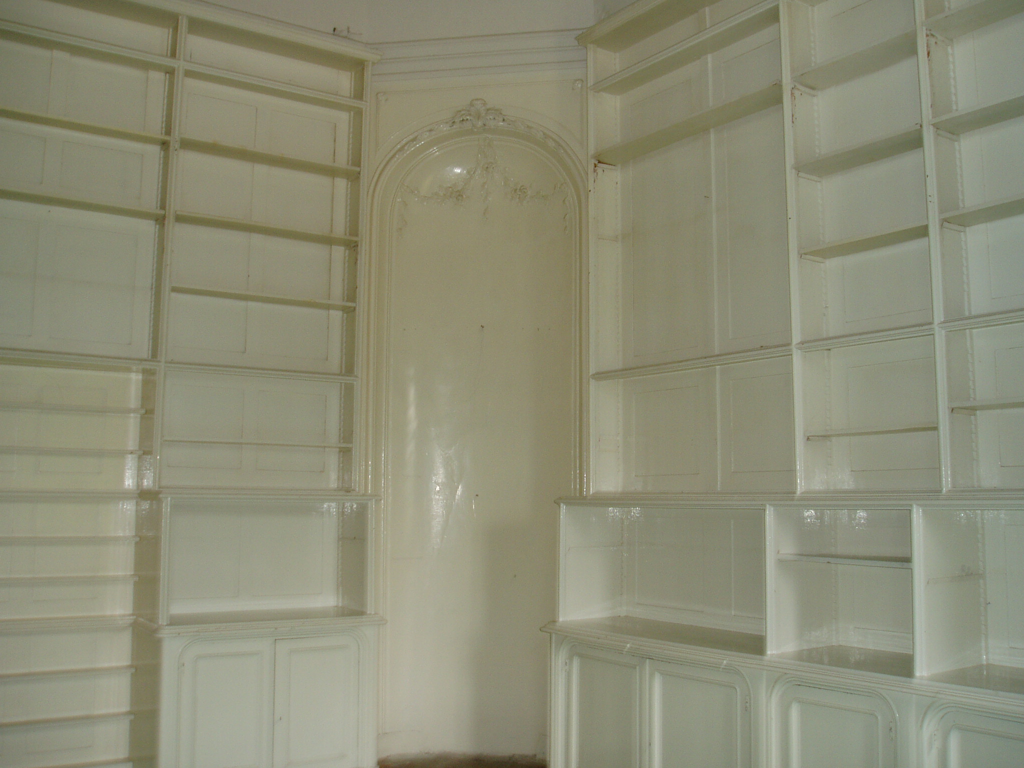 Nyilvános 1404 | 2958 | Tata, Kastély tér: Esterházy-kastély | Az Esterházy–kastély műemléki együttese az Öreg–tó partján, a középkori vár közvetlen szomszédságában áll. Fellner Jakab tervei szerint a XVIII. század második felében épült az Esterházy–család fraknói ága számára, későbarokk stílusban, a kiváló építész egyik legjelentősebb műveként. Fellner a hazai késő barokk, illetve korai klasszicizmus egyik legjelentősebb építésze, munkássága a mai napig meghatározza Tata városképét. Az épület több alkalommal is jelentős szerepet játszott a történelemben. 1809-ben I. Ferenc osztrák császár és felesége, Ludovika ide menekültek Napóleon hadai elől. Hosszú hetekig itt laktak, s az uralkodó itt, az északi szárny toronyszobájában írta alá az ún. Schönbrunni békét. 1897-ben Ferenc József és II. Vilmos német császár látogattak ide egy tatai hadgyakorlat alkalmából. 1921-ben az utolsó magyar király, IV. Károly menekült ide feleségével a balul végződött budaörsi csata után, s itt vették őket őrizetbe. A kastély eredeti berendezését sajnos széthordták, de épségben megmaradtak korabeli belsőépítészeti szerkezetei: kosáríves záródású ablakai, festett ajtói, díszes spalettái, stukkói és festett mennyezetei. A képen az egykori könyvtár (azóta sajnos fehérre mázolt) eredeti bútorzata látható. Sajnos a könyvek is a történelem viharainak áldozatai lettek. A fénykép 2005. júliusában készült. Felh. irod.: Polgárdy Géza: Tatatóváros és környéke kalauza. Az 1939-es kiadás reprintje. Tata, Móricz Zsigmond Városi Könyvtár, 1998 Magyar kastélylexikon 4. Komárom-Esztergom megye kastélyai és kúriái. Bp. Perfect Project, 2003 |