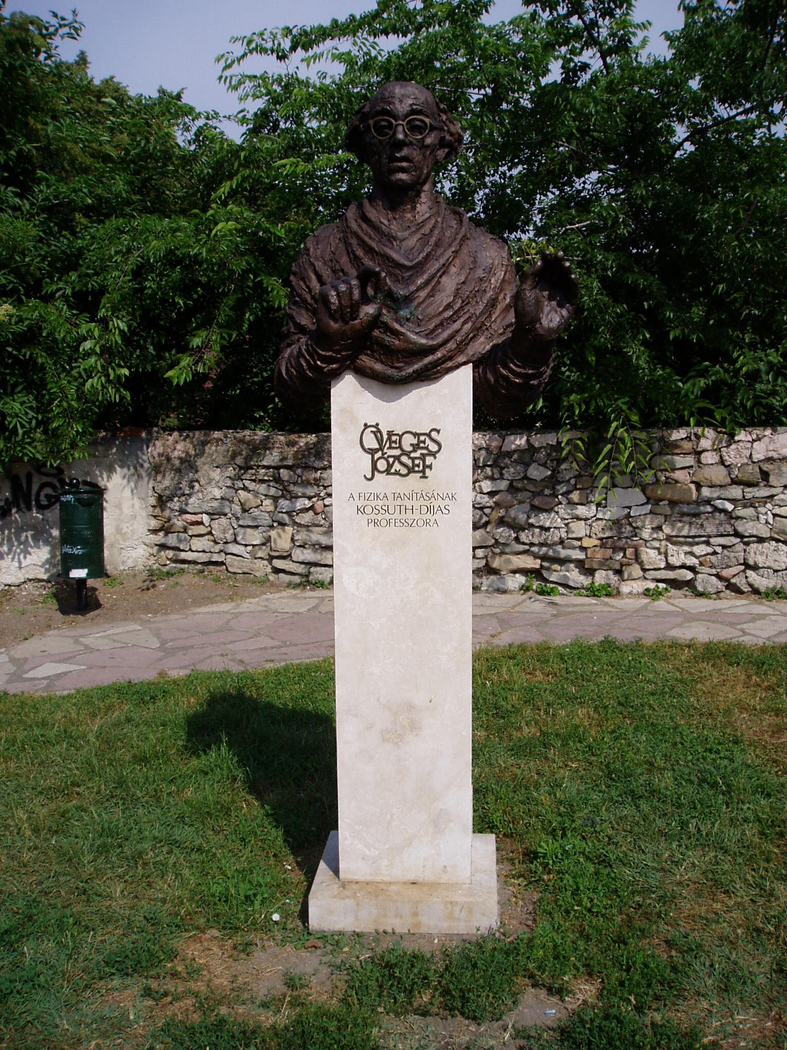Nyilvános 1379 | 3050 | Tata, Várkert: Öveges József szobra | Az Öregvár parkjában felállított Öveges József-mellszobor Tóth Béla alkotása. Öveges József (1895-1979) piarista tanár, a későbbi Kossuth-díjas fizikus 1922-1924 és 1930-1940 között a tatai gimnázium tanára volt (lásd: Tata, Tanoda tér 5.). Tatán döntötte el, hogy tudományos könyveket ír az ifjúságnak. Szerette volna feltárni az újabb nemzedékeknek a fizika csodáit, szépségeit. Fizikai kísérleteiről már akkor legendákat regéltek. Népszerűsége abban rejlett, hogy a legbonyolultabb kísérleteket is olyan nemes egyszerűséggel tudta elmondani, hogy azt még az iskolázatlan ember is megérthette. Tata 1964-ben díszpolgárává nyilvánította. Nevét az Öveges József Fizikai Emlékverseny is őrzi, amelyet évről-évre egykori tatai iskolájában rendeznek meg. A fénykép 2005. júliusában készült. Felh. irod.: www.eotvos-tata.sulinet.hu Wehner Tibor: Tatai szobrok, emlékművek, emléktáblák. Tata, 1980 Grósz Andrea: Fizikus reverendában. = www.sulinet.hu/eletestudomany Öveges József. = www.mult-kor.hu |