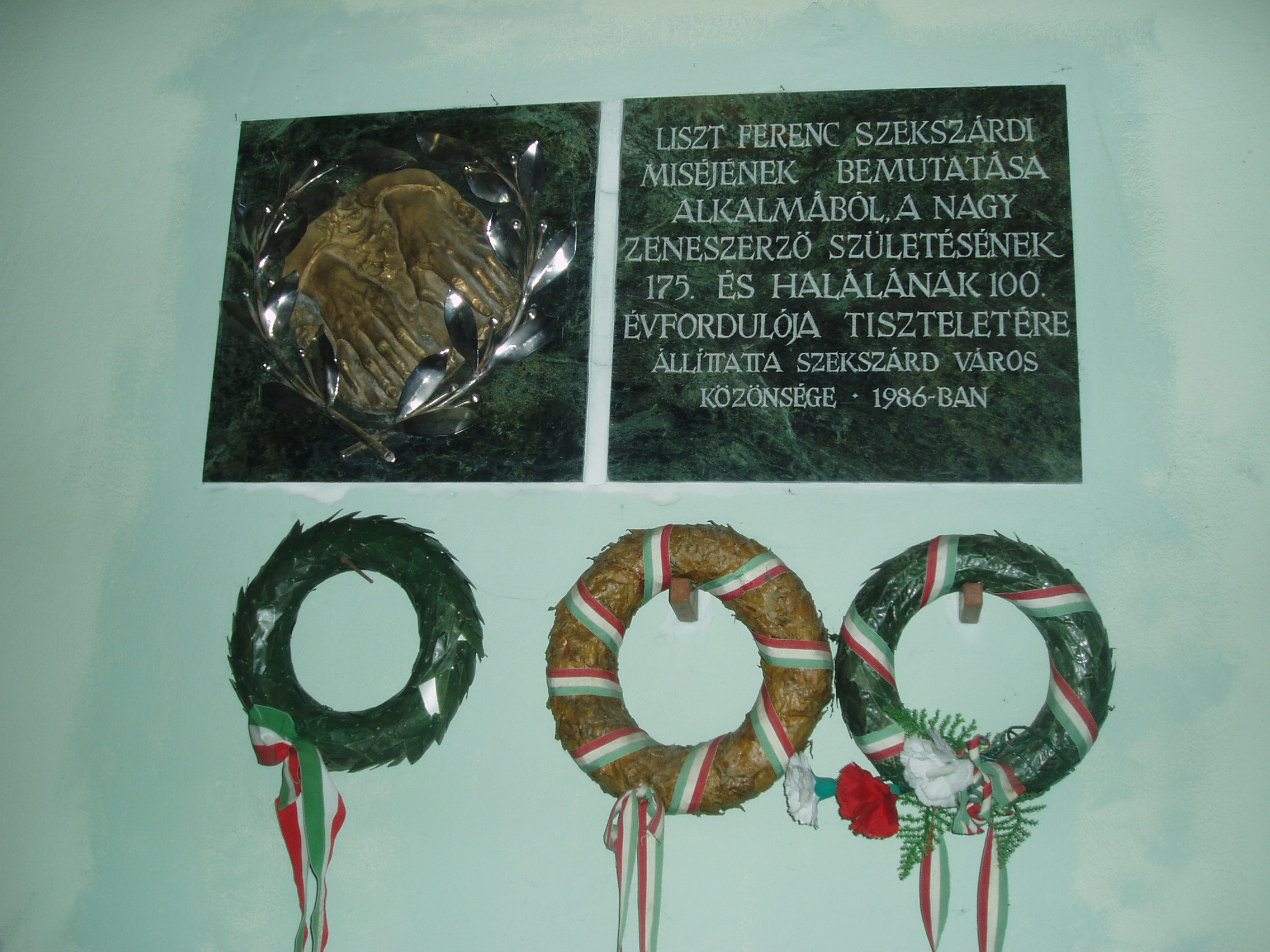 Nyilvános 1067 | 1577 | Szekszárd, Pázmány tér 6. Újvárosi templom | A neogót stílusú római katolikus templom Hrabovszky Péterné Kassay Anna alapítványából épült 1864 és 1868 között. Terveit a grazi Hans Petschnigg készítette. Az alapítvány ügyeit Augusz Antal vezette, ő felügyelte az építkezést és megnyerte személyes jó barátját, a szekszárdi házában (lásd: Szekszárd, Széchenyi u. 36–38.) több ízben vendégeskedő Liszt Ferencet, hogy a templom felszentelésére misét írjon. A Szekszárdi mise ősbemutatójára sok hátráltató körülmény miatt végül Jénában került sor 1872-ben, ezért a szakirodalomban Jénai mise néven is említik. A szekszárdi bemutatóra csak 1978-ban került sor e falak között, a Liszt Ferenc Társaság szekszárdi csoportjának kezdeményezésére, amikor a mű vegyeskari változata hangzott fel. Eredeti, férfikari változata 1986-ban, Liszt születésének 175. és halálának 100. évfordulója alkalmából szólalt meg először a templomban. Liszt és a Szekszárdi mise emlékét két dombormű és mellettük emléktábla is megörökíti a templomban. A Szekszárdi misének irodalmi emléket állított a városban született Baka István Graves–díjas író 1984-ben megjelent kisregényében, melynek főhőse Séner János, a Szekszárdi Dalárda egyik alapító tagja. A "Szekszárdi mise" című kisregény cselekménye e mű partitúrája körül forog. Utolsó jelenete itt, az Újvárosi templomban játszódik. A fénykép 2006 júliusában készült. Felh. irod.: Töttős Gábor: Szekszárd. Bp. Panoráma, 1986 Töttős Gábor: Irodalmi séták Szekszárdon. [s.l.] 1985 Hadnagy Albert: Liszt szekszárdi kapcsolatai. Szekszárd, Tolna Megyei Tanács levéltára, 1969 |