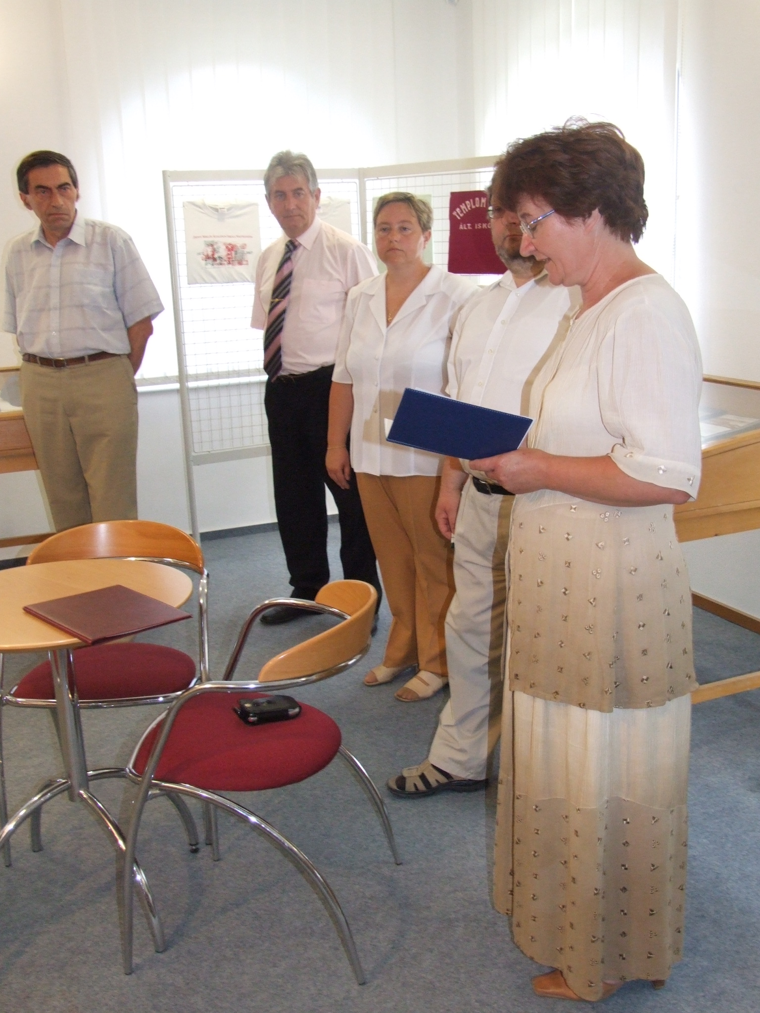 Nyilvános 1081 | 1672 | Balról jobbra: | Tarnóczky Attila, a kiállítás szervezője, Horváth István versmondó, Száraz Csilla, a Thúry György Múzeum igazgatója, Czupi Gyula, a Halis István Városi Könyvtár igazgatója, Szmodics Józsefné, Nagykanizsa M.J.V. Önkormányzatának Művelődési és Sportosztály vezetője |
