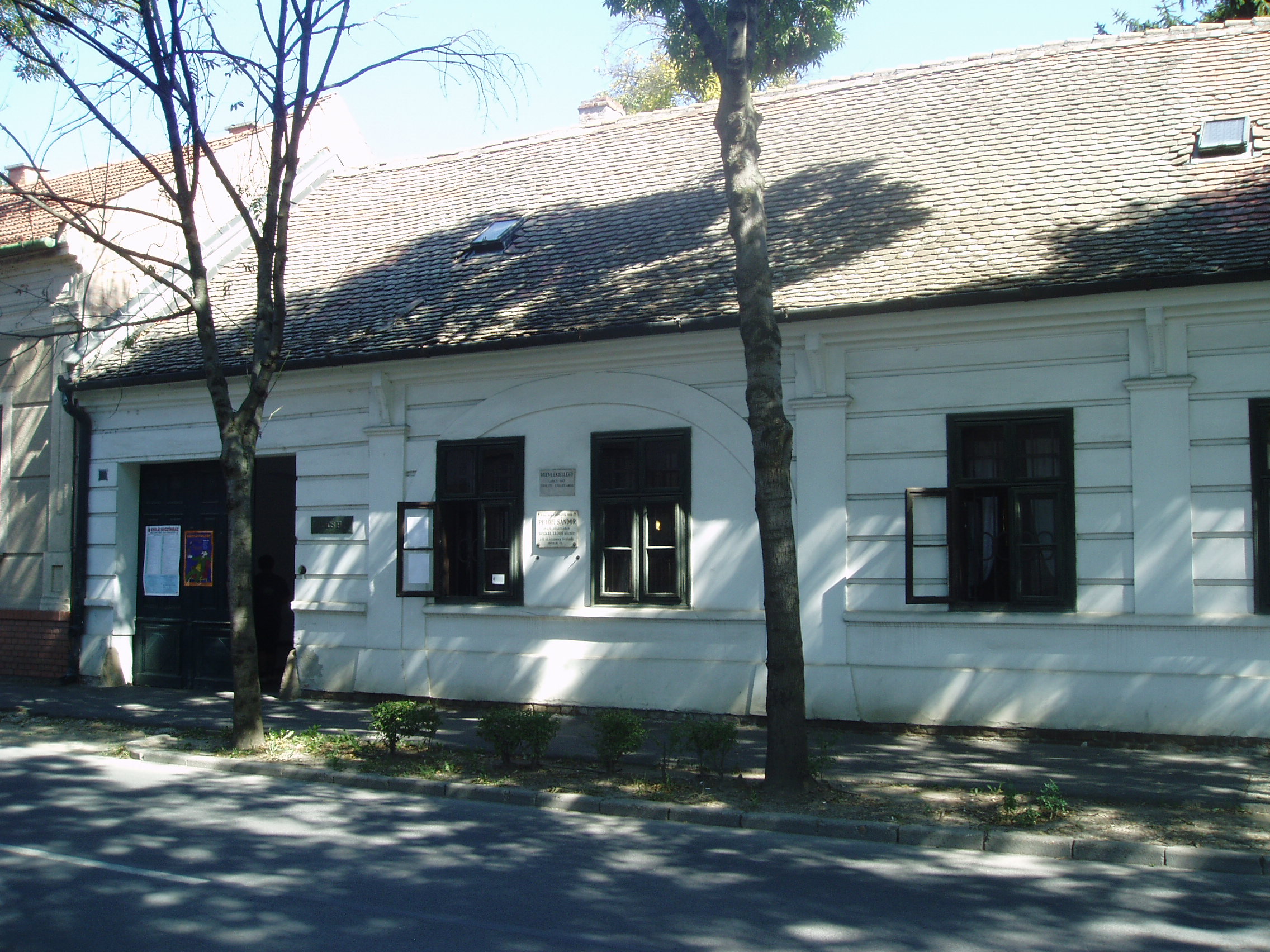 Nyilvános 1244 | 2526 | Gyula, Jókai utca 4. Ladics-ház | Az L alaprajzú, földszintes épület a XIX. század elején épült barokk stílusban a magyargyulai jegyző lakásának. 1849-ben a város eladta egy örmény származású tőzsérnek, akinek a családjába benősült dr. Ladics György jogász. Az ifjú pár ide költözött, s utódaik is itt éltek a ház múzeummá alakításáig. A hagyományőrző családban öt generáción át megmaradtak az életmódjukat tükröző bútorok, tárgyak, öltözékek, s a társas és szellemi életükről árulkodó tárgyak. Az épületet és a gyűjteményt 1978-ban a város megvásárolta, s a ritka együttest felhasználva múzeumot rendezett be. A múzeum hat szobában mutatja be a XIX-XX. század vidéki polgári elitjének életét. Az épület falán emléktábla jelzi, hogy 1849. júliusában ebben a házban szállt meg Petőfi Sándor, amikor Mezőberényből átjött a megyegyűlésre, hogy az országos eseményekről tájékozódjon. Házigazdája Békés megye akkori főjegyzője, Szakál Lajos népies költő volt, s itt tartózkodott Szakál unokatestvére, Sárosi Gyula is, az Arany trombita költője. A hagyomány szerint a három költő éjfélekig beszélgetett a haza sorsáról a szabadságharc utolsó szakaszában. A fénykép 2007 júliusában készült. Felh. irod.: Czeglédi Imre: Gyula útikalauz. 2., bőv. kiad. Gyula, 1995 |