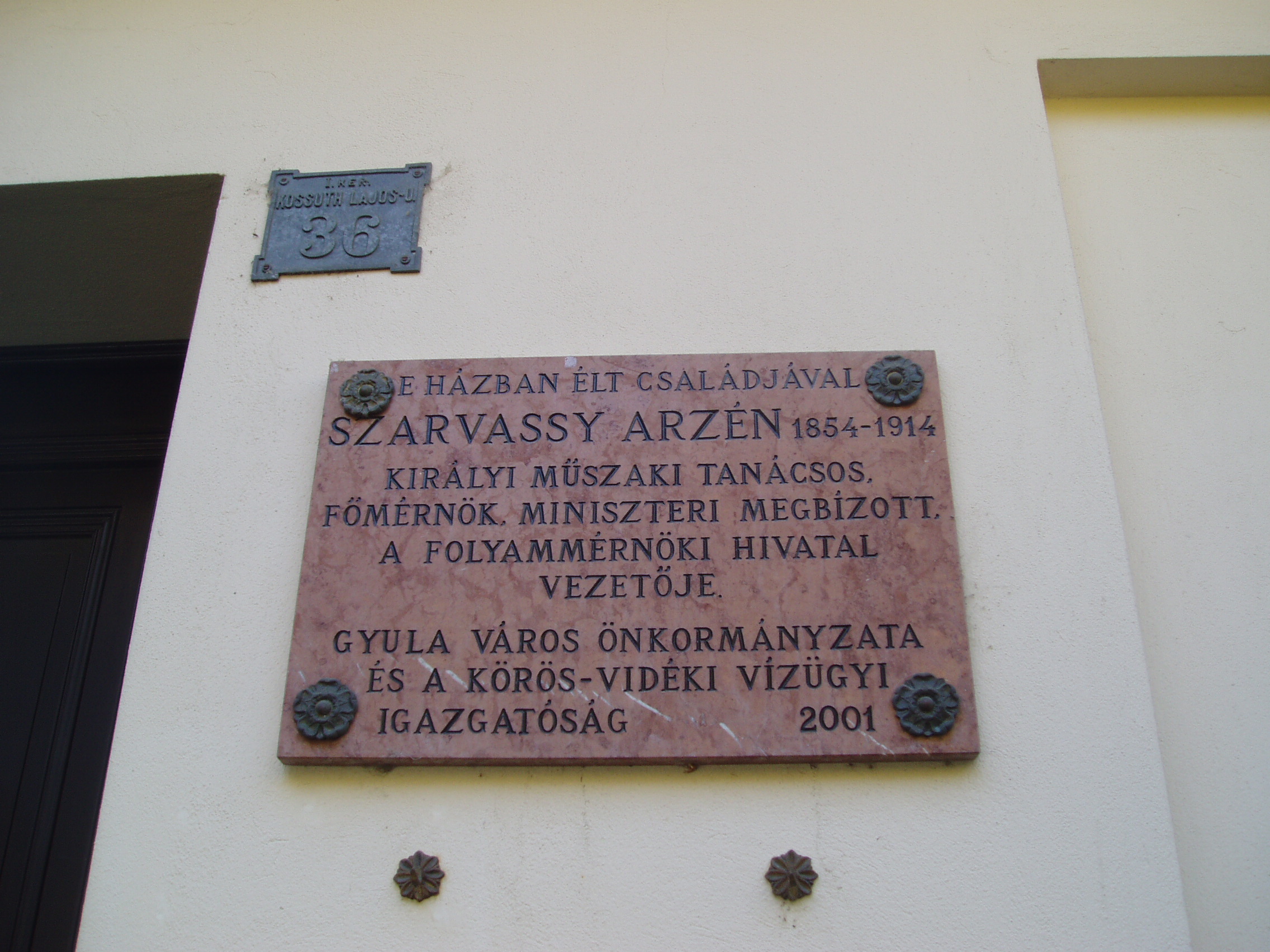 Nyilvános 978 | 1504 | Gyula, Kossuth utca 36. | Az épületben az uradalmi kulcsár lakott, majd a szabadságharc bukása után itt helyezték el az új szervezésű csendőrséget. 1853-ban itt tartották őrizetben Pfiffner Paulinát (1825-1853), egy mezőhegyesi méneskari tiszt leányát, aki férfiruhában mint honvéd hadnagy végigharcolta a szabadságharcot. A "Hős honvédleány" egy óvatlan pillanatban ebben a házban lett öngyilkos: szeptember 1-jén fegyverhez jutott és meglőtte magát. Hetekkel később, szeptember 29-én hunyt el a gyulai kórházban. Testét az egyházi tilalom miatt a temető árkában földelték el, csak 1888-ban kapott méltó síremléket közadakozásból. A házon emléktábla idézi Szarvassy Arzén (1854-1914) alakját. A királyi műszaki tanácsos, a Folyammérnöki Hivatal vezetője ebben a házban élt családjával. A fénykép 2007 júliusában készült. Felh. irod.: Czeglédi Imre: Gyula útikalauz. 2. jav., bőv. kiad. Gyula, 1995 www.bekes-archiv.hu/dokumentumok/olvasokonyv |