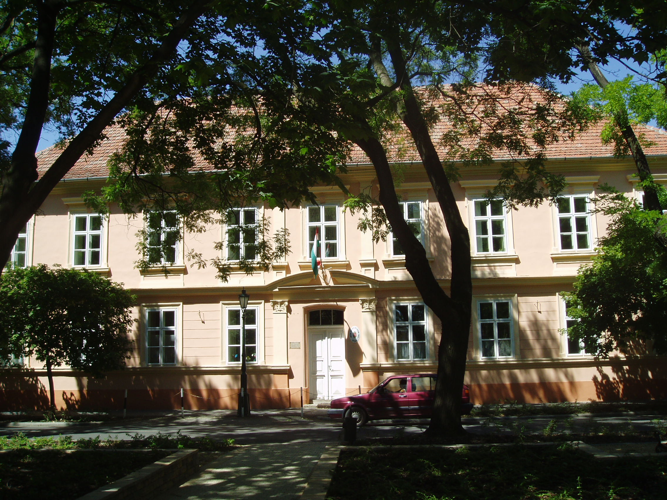 Nyilvános 917 | 1494 | Gyula, Petőfi tér 5. Római Katolikus Általános Iskola | Az épület története a török előtti időkre nyúlik vissza. Déli szárnyának földszinti része már 1518-ban szerepel a város történetében: ez volt a város fürdőháza. A törökök kibővítve rituális fürdőnek használták. Kiűzésük az akkor kupolákkal fedett épületet a reformátusok kapták meg imaháznak. Melléje Wenckheim József földesúr iskolát építtetett, amely később megkapta az egykori fürdőházat is. Az 1800-as évek első harmadában két ízben is emeletráépítéssel bővítették az egyesített épületet, ekkor alakult ki mai, klasszicista arculata. 1965-ben a 48-as utca felől oda nem illő szárnnyal bővítették. 1819/20-ban ebbe az iskolába járt a kis Erkel Ferenc, s itt tanult Pálffy Albert is. E falak között alapította meg a város első közkönyvtárát 200 kötetes adományával Mogyoróssy János. 1849-ben Damjanich kórházának egy részlege működött benne. 1857-ben itt nyitották meg az első gyulai rajziskolát, melynek tanára, Karl Fischer bécsi festő volt a fiatal Munkácsy Mihály első tanára. A fénykép 2007 júliusában készült. Felh. irod.: Czeglédi Imre: Gyula útikalauz. 2. jav., bőv. kiad. Gyula, 1995 |