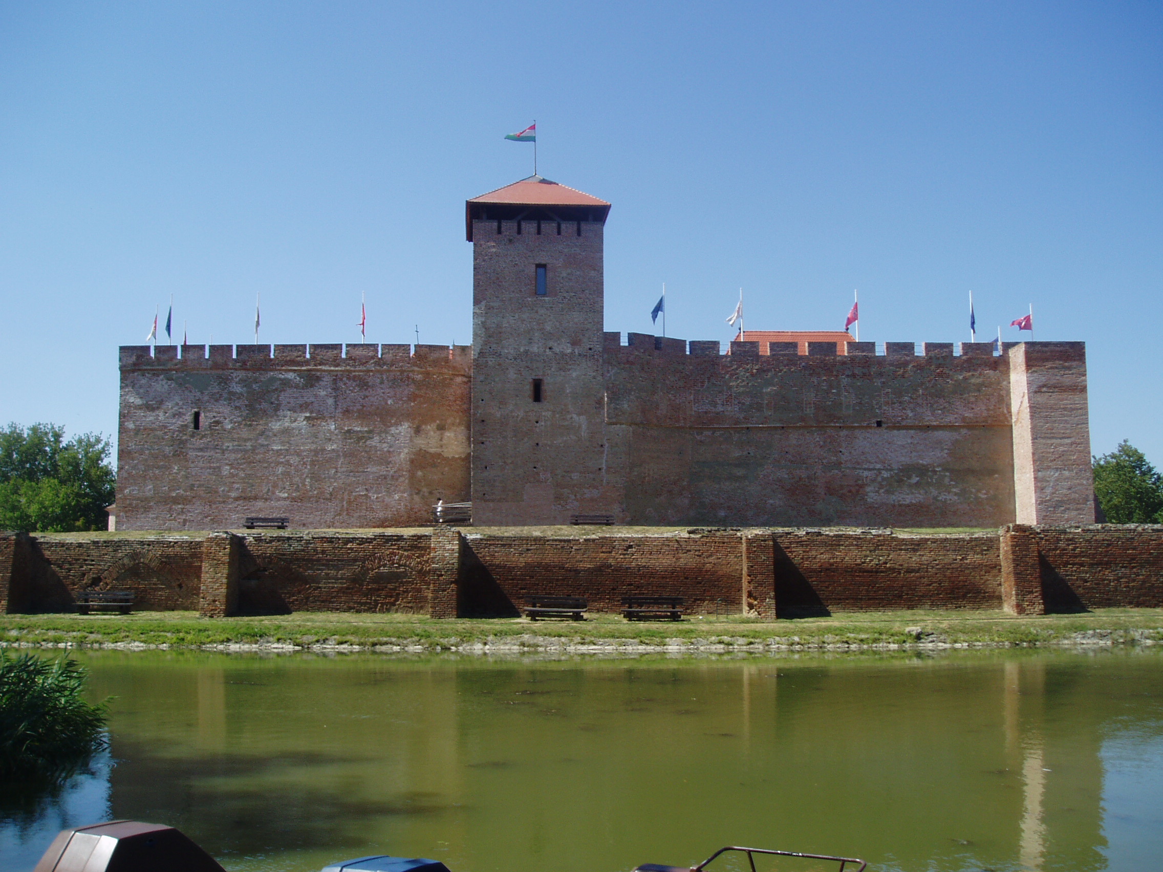 Nyilvános 950 | 1418 | Gyula, Vár | Az Alföld egyetlen középkori téglavárát a Maróthy család építtette a XV. század első felében. Derékvárának saroktornyát 1482 után Corvin János emeltette (ma eszpresszó és borozó működik benne). Corvin János, mint a trónöröklésből kiszorított herceg 1482 és 1504 között volt a vár ura, s feleségével, Frangepán Beatrix-szel együtt gyakran tartózkodott itt. Corvin János 150-ben bekövetkezett halála után özvegye állandóan Gyulán lakott. 1508-ban itt halt meg leánya, Corvin Erzsébet, a Hunyadi család utolsó sarja. 1543-ban a vár történelmi esemény színhelye volt: itt tartott közös országgyűlést Fráter György elnökletével az Erdéllyel határos nyolc alföldi megye nemessége. 1552-től a vár a török elleni végvári rendszer láncszeme lett és ó-olasz bástyás palánkvárrá alakították át. 1566-ban került török kézre, miután erősítés hiányában, kilenc heti ostrom után Kerecsényi László kapitány kénytelen volt feladni. Bár a török szabad elvonulást ígért, a maradék védőket a janicsárok megtámadták és lemészárolták, Kerecsényi kapitányt pedig foglyul ejtették és Nándorfehérváron kivégezték. A vár 1695-ig volt török kézen. Akkori állapotát megörökítette leírásában Evlia Cselebi török világutazó. A Rákóczi-szabadságharc után az ún. huszárvárat lerombolták, csak a belső vár maradt meg. Az épület déli sarkán Tóth Béla: Végvári vitéz című lovas szobra áll. A vár két bejárata közül a délkeleti oldalon van az ún. Kerecsényi kapu. A boltíve alatti két helyiségben a helyi hagyomány szerint Damjanich János és Lahner György tábornok volt elszállásolva 1849 augusztusában. A várudvar 1964 óta a Gyulai Várszínház előadásainak színhelye. A belső termekben a közelmúltban nyílt meg a Vármúzeum. A vár előtt az egykori vizesárok kiszélesítésével csónakázótavat létesítettek, melynek közepén tószínpadot alakítottak ki. A fénykép 2007 júliusában készült. Felh. irod.: Czeglédi Imre: Gyula útikalauz. 2. jav., bőv. kiad. Gyula, 1995 www.vendegvaro.hu www.gyula.hu |
