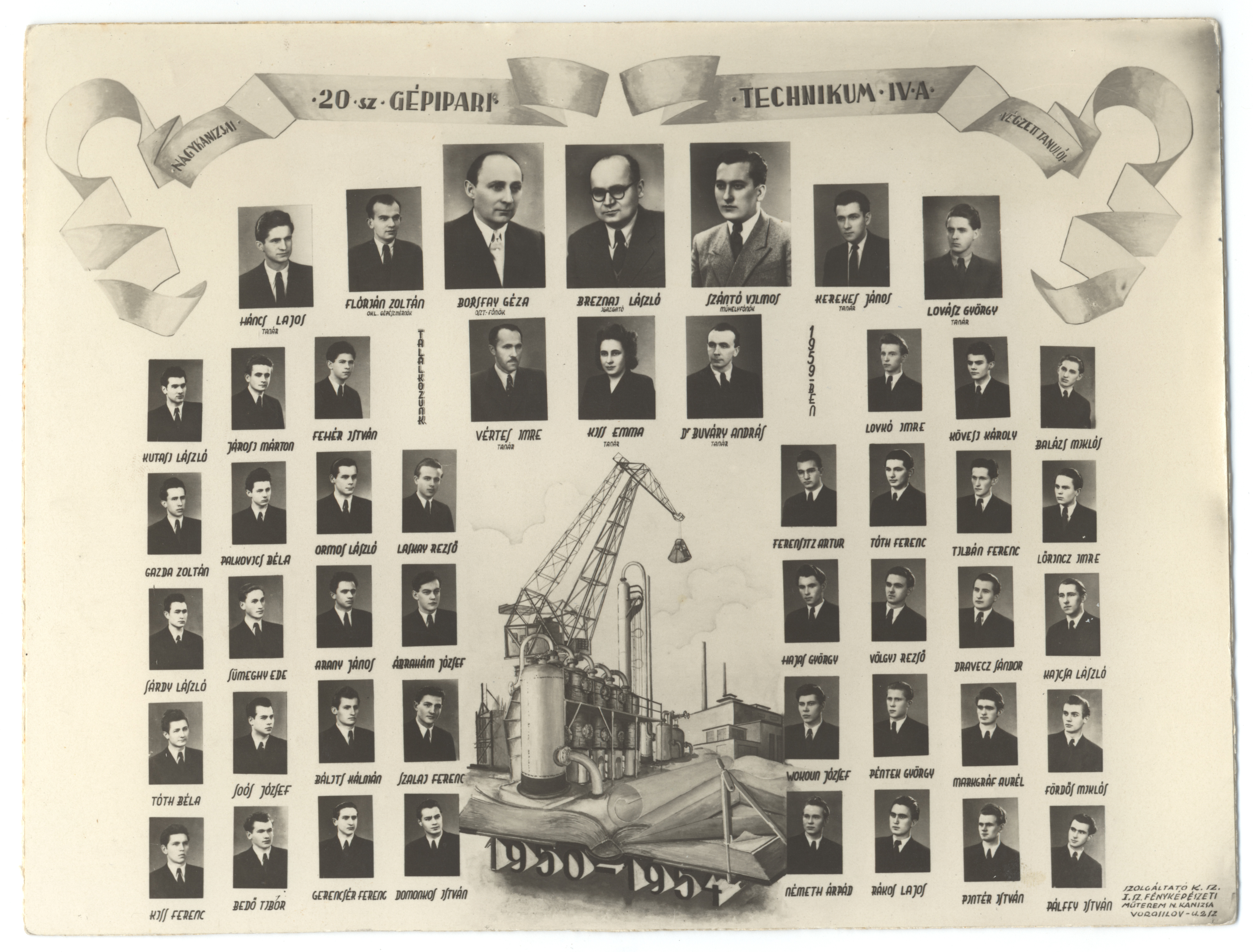 Nyilvános 1333 | 2377 | Nagykanizsai 20 sz Gépipari Technikum IV A végzett tanulói | Borsfay Géza osztályfőnök Breznai László igazgató Buváry András dr. Flórján Zoltán olk. gépészmérnök Háncs Lajos tanár Kerekes János tanár Kiss Emma tanár Lovász György tanár Szántó Vilmos műhelyfőnök Vértes Imre tanár Ábrahám József Arany János Balázs Miklós Bálits Kálmán Bedő Tibor Domonkos István Dravecz Sándor Fehér István Ferensitz Artur Fördős Miklós Gazda Zoltán Gerencsér Ferenc Hajas György Járosi Márton Kajcsa László Kiss Ferenc Kövesi Károly Kutasi László Laskay Rezső Lovkó Imre Lőrincz Imre Markgráf Aurél Németh Árpád Ormos László Pálffy István Palkovics Béla Péntek György Pintér István Rákos Lajos Sárdy László Soós József Sümeghy Ede Szalai Ferenc Tilbán Ferenc Tóth Béla Tóth Ferenc Völgyi Rezső Wokoun József |