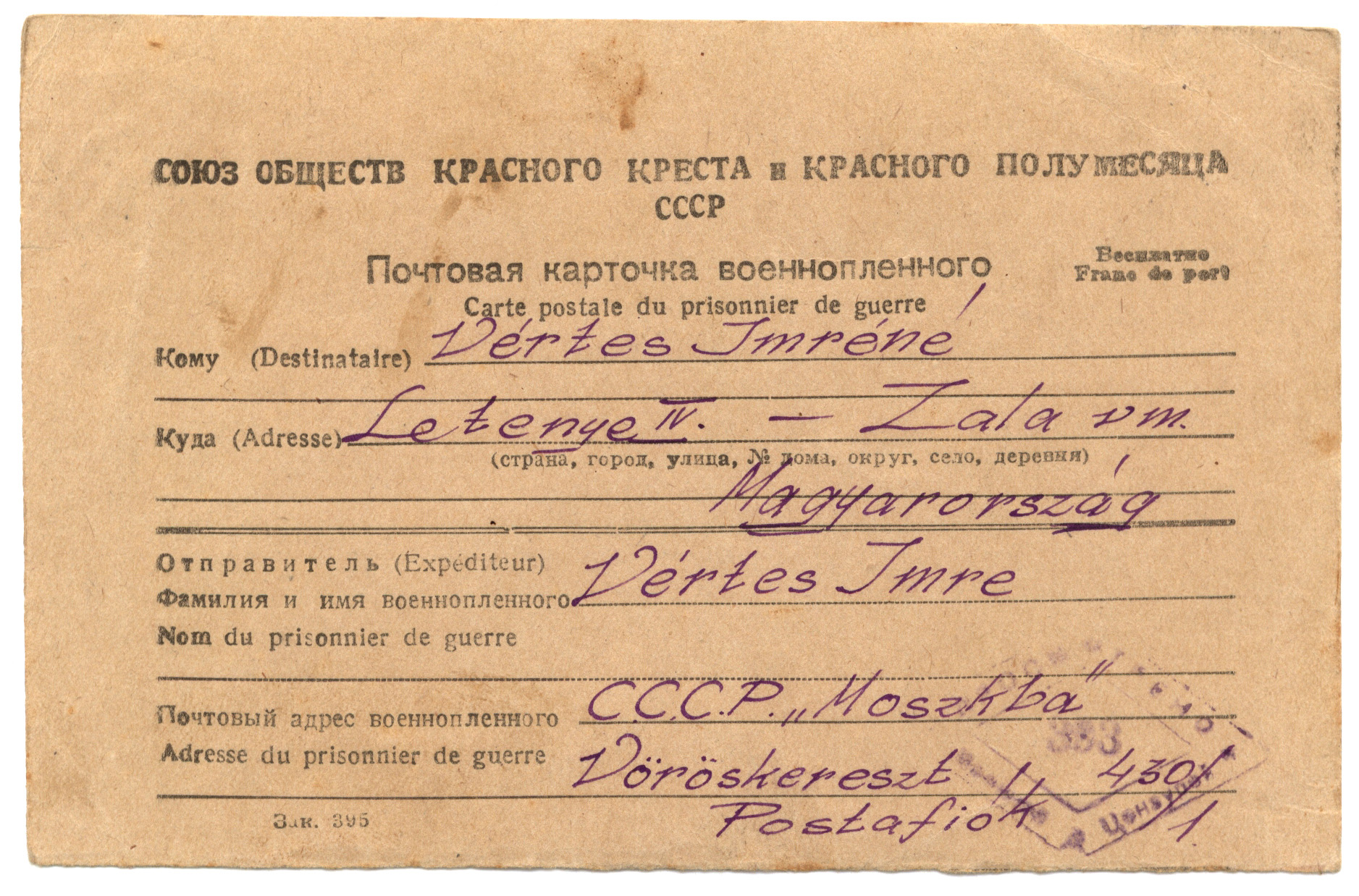 Nyilvános 1238 | 2153 | Vértes Imréné | Letenye IV. - Zala vm. Magyarország Vértes Imre hdgy. C.C.C.P. "Moszkva" Vöröskereszt, Postafiók 430/1. c. 10. IV. hó 1947. (Kaptam V. 12-én) Kedveseim! Húsvét volt, ünnep. Hogy gondoltam Rátok? Így! Volt nékem kis váram, mesekinccsel ékes, Szerelemmel, szívvel, széppel, jóval fényes. Aranyasszony ajka, gyermekkacaj hangja Csilingelt a szívben boldogság harangja. Mit éreztem? Amit Te szoktál érezni-, Sárikám - mikor a négy alvó kisgyerek fölött imát dalol a szíved. Nagy, tiszta, szép vágyat! A szép élet utáni vágyat. Apuka |
