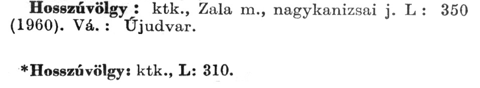 Nyilvános 2051 | 5591 | A szócikkek felismertetett szövege: | (Az első csillag után az 1972-es, a második csillag után az 1981-es kiadású kiegészítő kötetből származó szöveg következik) Hosszúvölgy: ktk., Zala m., nagykanizsai j. L : 350 (1960). Vá. : Újudvar. *Hosszúvölgy: ktk., L: 310. A szócikkek a következő lexikonból származnak: Cím: Új magyar lexikon Közreműködő: Berei Andor (1900-1979) (szerk.) Szerz. közl.: [szerk. Berei Andor et al.] Kiadás jelzés: 2. lny. Kiadás: Budapest : Akad. K., 1961-1962 Kötetei: 1., A - C 2., D - F 3., G - J 4., K - Me 5., Mf - R 6., S - Z 7. köt., A-Z Kiegészítő kötet (1972) Kiegészítő kötet, 1962÷1980 (1981) ETO jelzet: 03=945.11 Szakjelzet: 030 Cutter: U 28 Nyelv: magyar Megjegyzés: Bibliogr. a címszavak egy részének végén |