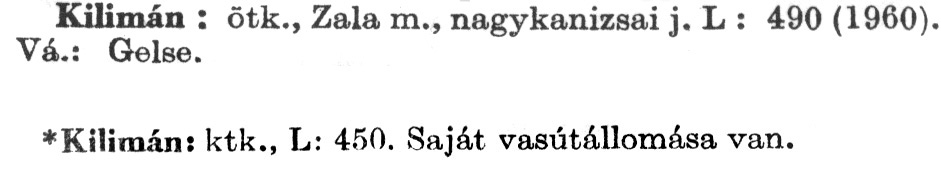 Nyilvános 2094 | 5600 | A szócikkek felismertetett szövege: | (A csillag után az 1972-es kiadású kiegészítő kötetből származó szöveg következik) Kilimán: ötk., Zala m., nagykanizsai j. L : 490 (1960). Vá.: Gelse. *Kilimán: ktk., L: 450. Saját vasútállomása van. A szócikkek a következő lexikonból származnak: Cím: Új magyar lexikon Közreműködő: Berei Andor (1900-1979) (szerk.) Szerz. közl.: [szerk. Berei Andor et al.] Kiadás jelzés: 2. lny. Kiadás: Budapest : Akad. K., 1961-1962 Kötetei: 1., A - C 2., D - F 3., G - J 4., K - Me 5., Mf - R 6., S - Z 7. köt., A-Z Kiegészítő kötet (1972) Kiegészítő kötet, 1962÷1980 (1981) ETO jelzet: 03=945.11 Szakjelzet: 030 Cutter: U 28 Nyelv: magyar Megjegyzés: Bibliogr. a címszavak egy részének végén |