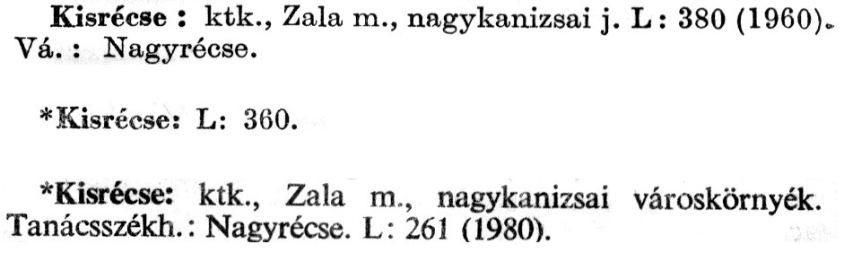 Nyilvános 1756 | 3577 | A szócikkek felismertetett szövege: | (Az első csillag után az 1972-es, a második csillag után az 1981-es kiadású kiegészítő kötetből származó szöveg következik) Kisrécse: ktk., Zala m., nagykanizsai j. L: 380 (1960) Vá. : Nagyrécse. *Kisrécse: L: 360. *Kisrécse: ktk., Zala m., nagykanizsai városkörnyék. Tanácsszékh.: Nagyrécse. L: 261 (1980). A szócikkek a következő lexikonból származnak: Cím: Új magyar lexikon Közreműködő: Berei Andor (1900-1979) (szerk.) Szerz. közl.: [szerk. Berei Andor et al.] Kiadás jelzés: 2. lny. Kiadás: Budapest : Akad. K., 1961-1962 Kötetei: 1., A - C 2., D - F 3., G - J 4., K - Me 5., Mf - R 6., S - Z 7. köt., A-Z Kiegészítő kötet (1972) Kiegészítő kötet, 1962÷1980 (1981) ETO jelzet: 03=945.11 Szakjelzet: 030 Cutter: U 28 Nyelv: magyar Megjegyzés: Bibliogr. a címszavak egy részének végén |