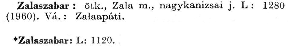 Nyilvános 2139 | 5562 | A szócikkek felismertetett szövege: | (A csillag után az 1972-es kiadású kiegészítő kötetből származó szöveg következik) Zalaszabar: ötk., Zala m., nagykanizsai j. L: 1280 (1960). Vá.: Zalaapáti. *Zalaszabar: L: 1120. A szócikkek a következő lexikonból származnak: Cím: Új magyar lexikon Közreműködő: Berei Andor (1900-1979) (szerk.) Szerz. közl.: [szerk. Berei Andor et al.] Kiadás jelzés: 2. lny. Kiadás: Budapest : Akad. K., 1961-1962 Kötetei: 1., A - C 2., D - F 3., G - J 4., K - Me 5., Mf - R 6., S - Z 7. köt., A-Z Kiegészítő kötet (1972) Kiegészítő kötet, 1962÷1980 (1981) ETO jelzet: 03=945.11 Szakjelzet: 030 Cutter: U 28 Nyelv: magyar Megjegyzés: Bibliogr. a címszavak egy részének végén |