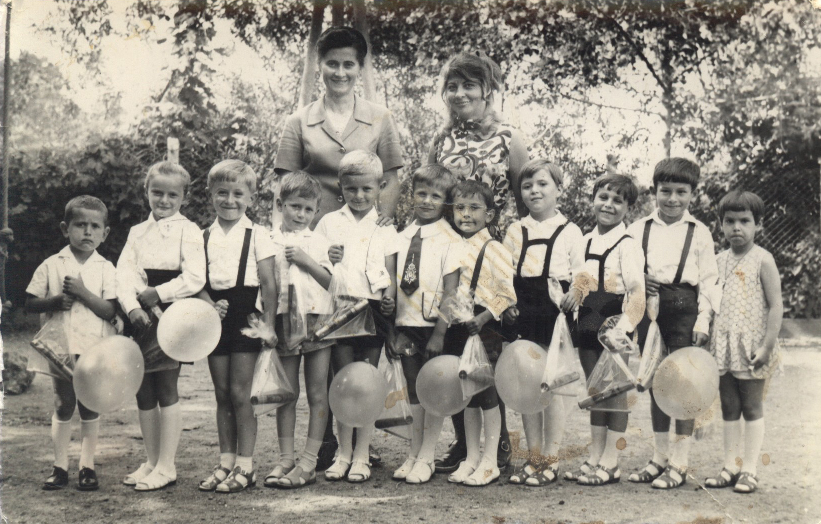 Nyilvános 1634 | 4415 | 1970-es évek. A kép a régi óvoda udvarában készült. Baloldali óvónő: Könyves Rózsa, jobboldali keresztneve Gabriella. Gyerekek balról jobbra: Süvegi Lajos, makai Mária, Baranyai János, Baranyai László, Zsovár László, Szemérnyi László, nem ismert, Molnár Hajnalka, Horváth László, Baranyai Elemér, ismeretlen. | |